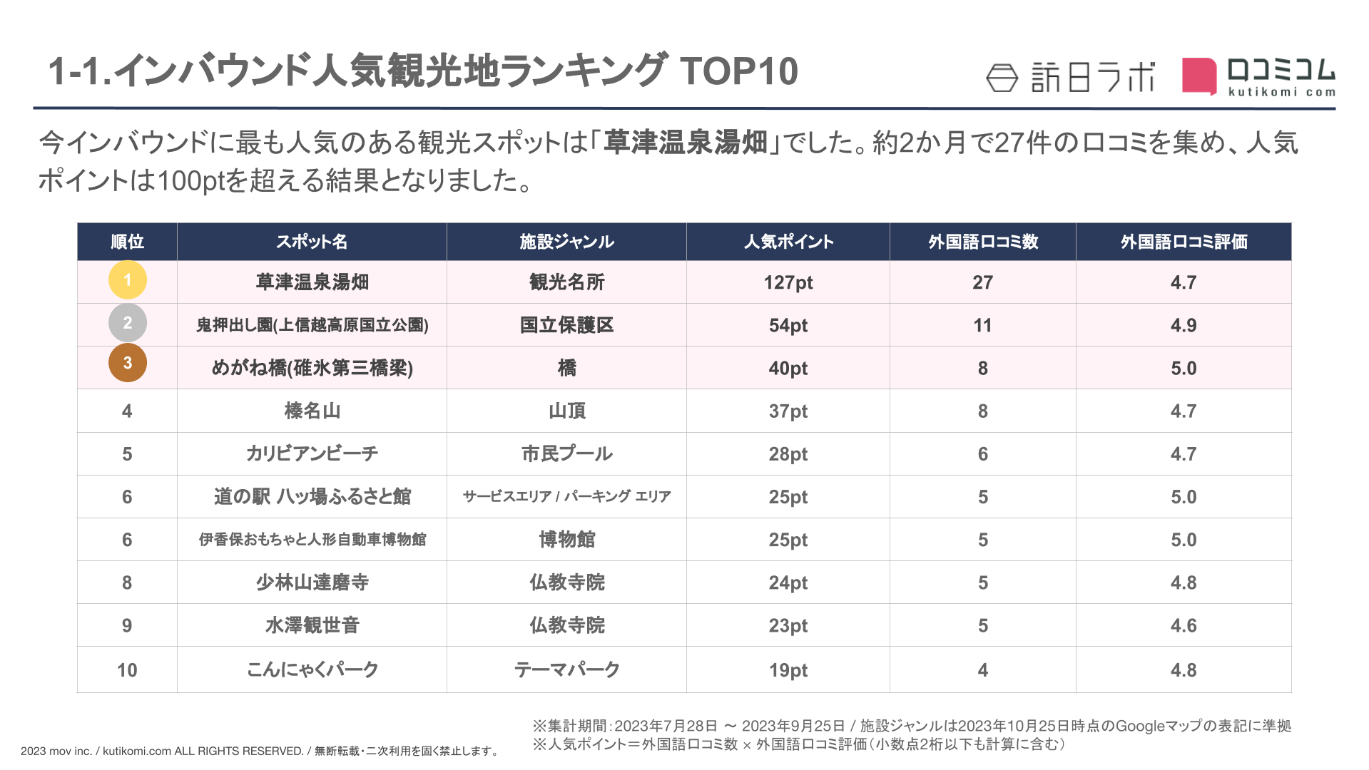 【独自調査】インバウンド人気観光地ランキング群馬編:コロナ後 最新の訪日客の支持を集めたスポットTOP10を発表 #インバウンドMEO