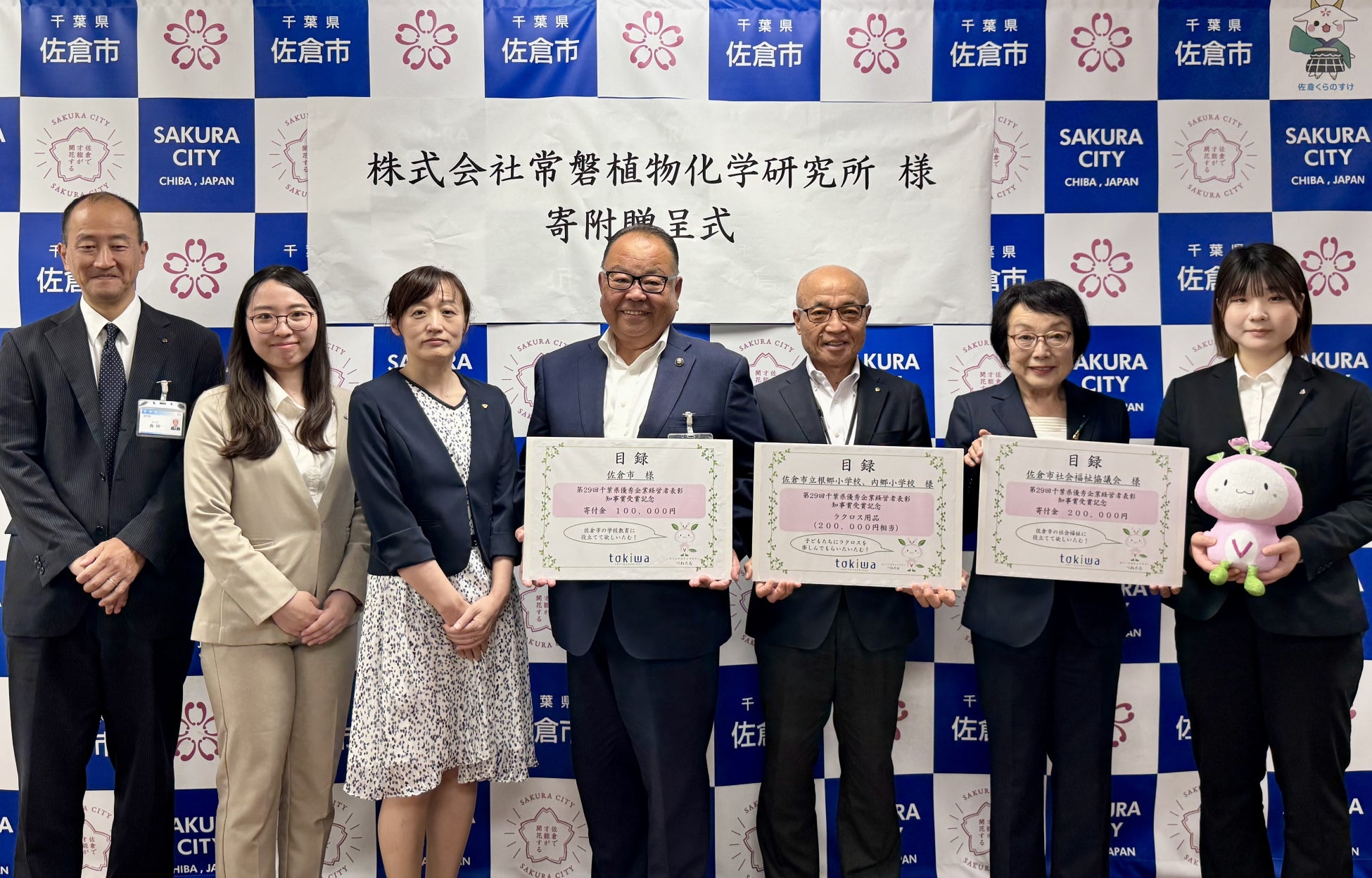 株式会社常磐植物化学研究所(代表取締役社長:立﨑仁)から、佐倉市(市長:西田三十五)、佐倉市教育委員会(教育長:圓城寺一雄)及び佐倉市社会福祉協議会(会長:大藏文子)へ寄附・寄贈があり、贈呈式を行いました。