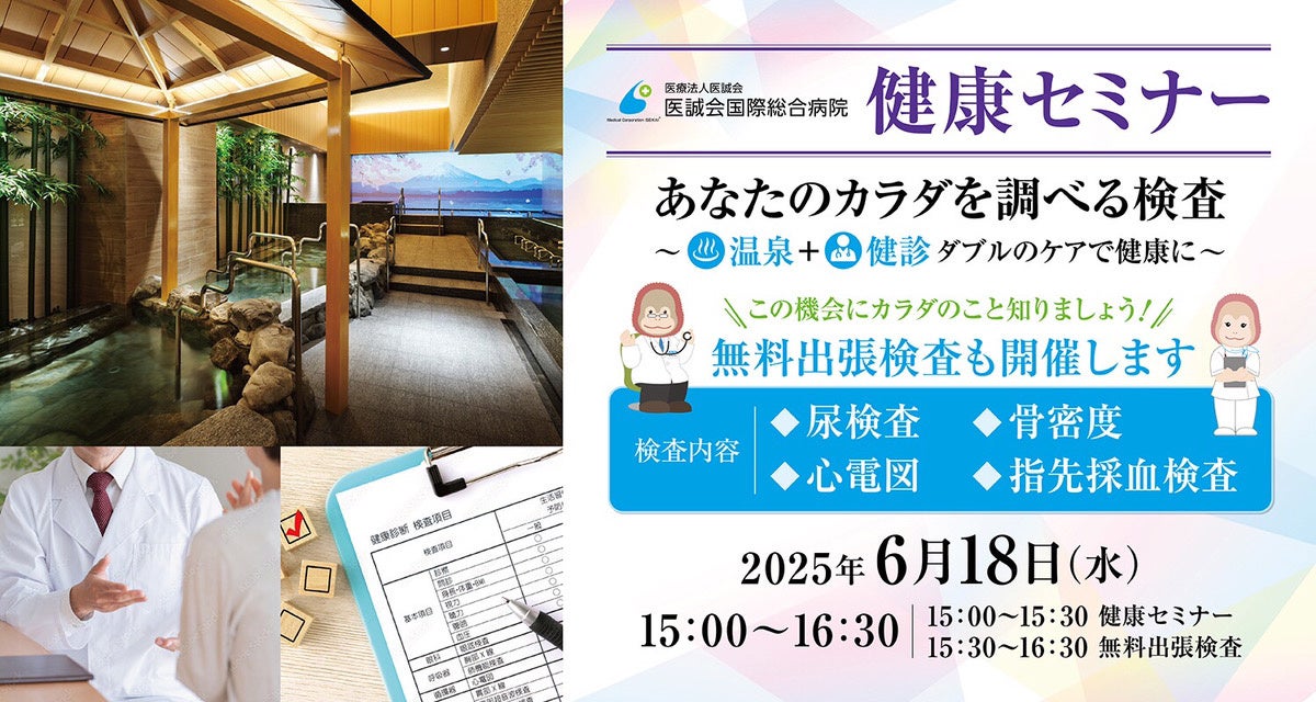 「うめきた温泉 蓮 Wellbeing Park」(総支配人:藤立 達哉、所在地:大阪市)は、2025年6月18日に、提携医療機関である医療法人医誠会(代表者:谷 幸治、本社:大阪市)の「医誠会国際総合病院」の臨床検査技師を講師に招き、第2回健康セミナーを開催することをお知らせします。