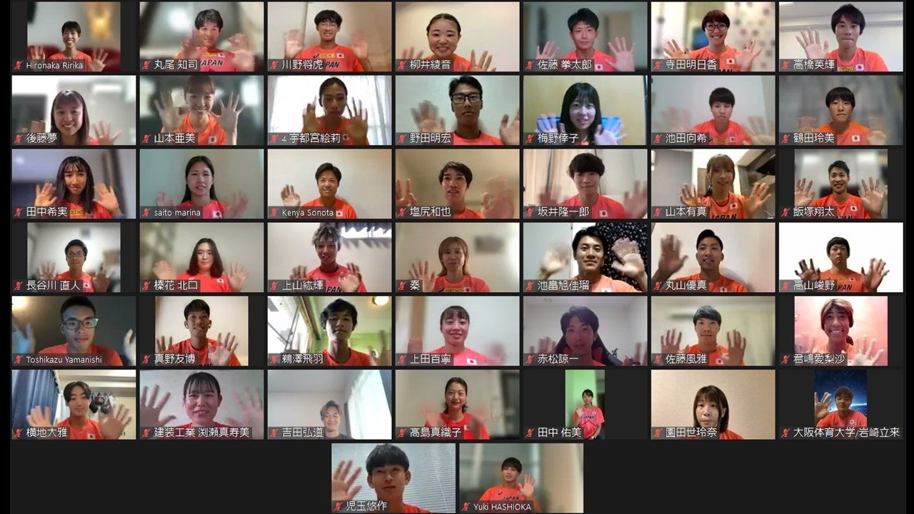 昨年のオレゴン世界選手権、一昨年の東京オリンピックと同様に、今回の結団式もオンラインで開催。国内外で準備を進めている各競技者、そして選手団のコーチ、スタッフが画面越しで顔を揃えるとともに、その模様は、限定公開の形で関係者に向けてライブで配信されました。