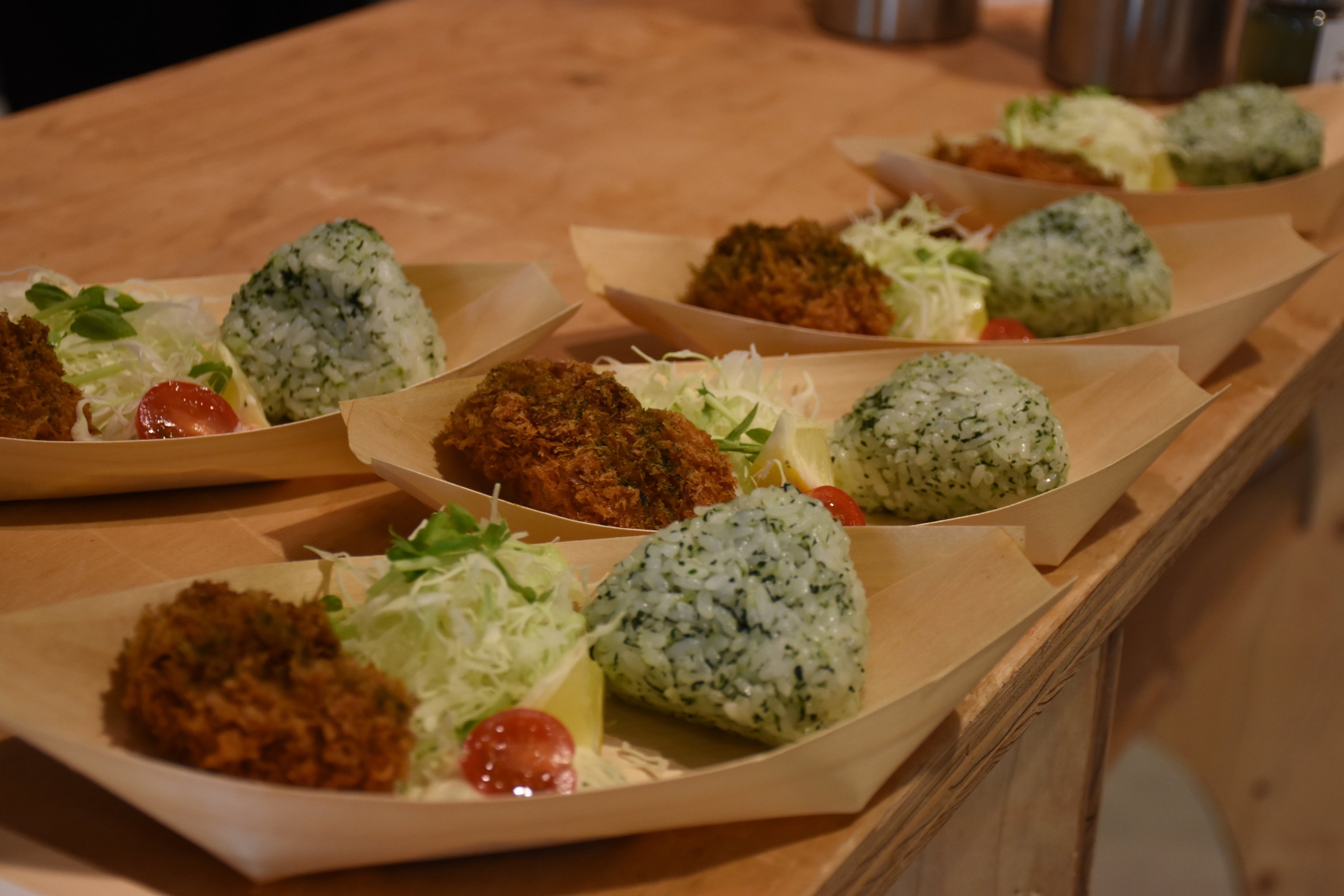 それぞれの飲食店、菓子店がブースを構えて、各店舗80食ほど用意した試食が並びました。来場者は事前に購入した5枚つづりのチケット(2000円、先着200綴)を家族や友人とシェアしながら、気になる店でチケットと新メニューの試食を交換していきました。