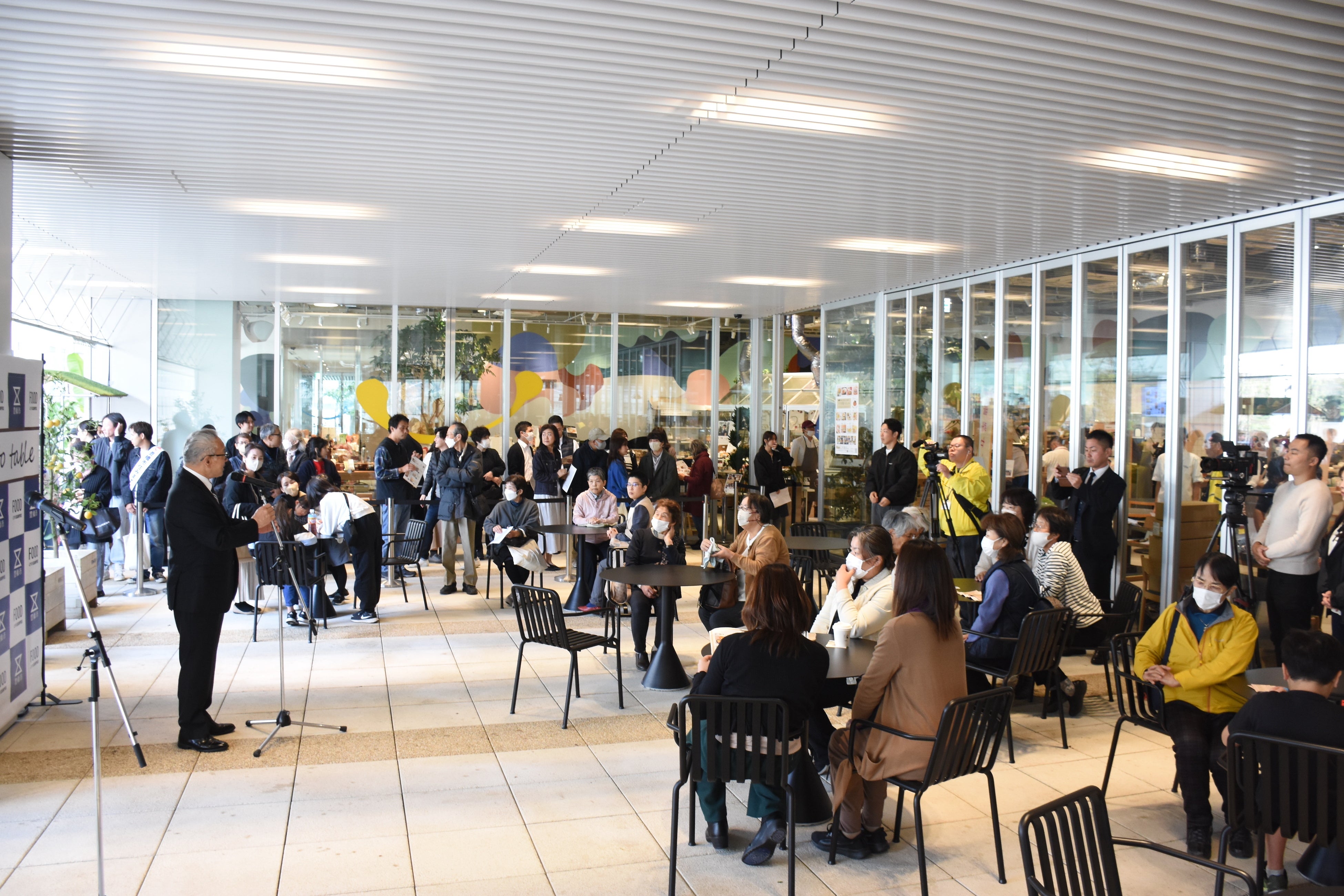 お披露目会には、メニュー開発にまで至った13の飲食店・菓子店と12の農家が登場。正午、浅井由崇市長の「豊橋は食と農のまちをつくり、『おいしいものを食べたければ豊橋に行こう』と思ってもらえる、そんなまちづくりを目指して、頑張って参ります」というあいさつでスタートしました。