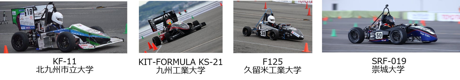 ♦学生フォーミュラ日本大会に出場した地元の4大学のフォーミュラカーを一同に展示。