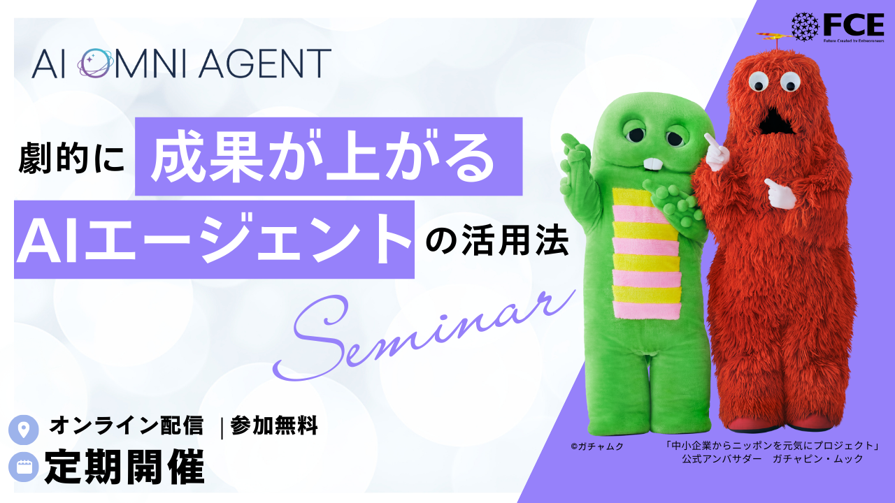株式会社FCE(本社:東京都新宿区、代表取締役社長:石川淳悦、証券コード:9564)は、企業の生産性を進化させるAIプラットフォーム「AI OMNI AGENT」の30分無料オンラインセミナー「劇的に成果が上がる AIエージェントの活用法」を参加者の皆様から多数のご好評をいただいているため、2026年2月に追加開催いたします。本セミナーでは、当社が実際に営業現場で活用し、契約数約1.4倍達成・年間4,500万円以上(※1)の売上インパクトを実現したAIエージェント「AI OMNI AGENT」の具体的な活用方法について、詳しくお伝えします。