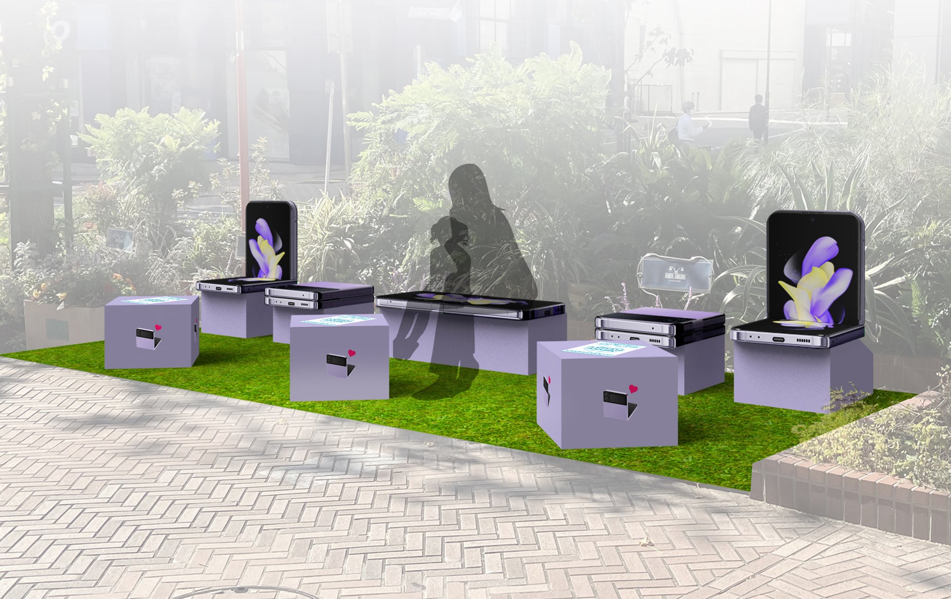 ■Galaxy提供の折りたたみスマホ型ベンチについて