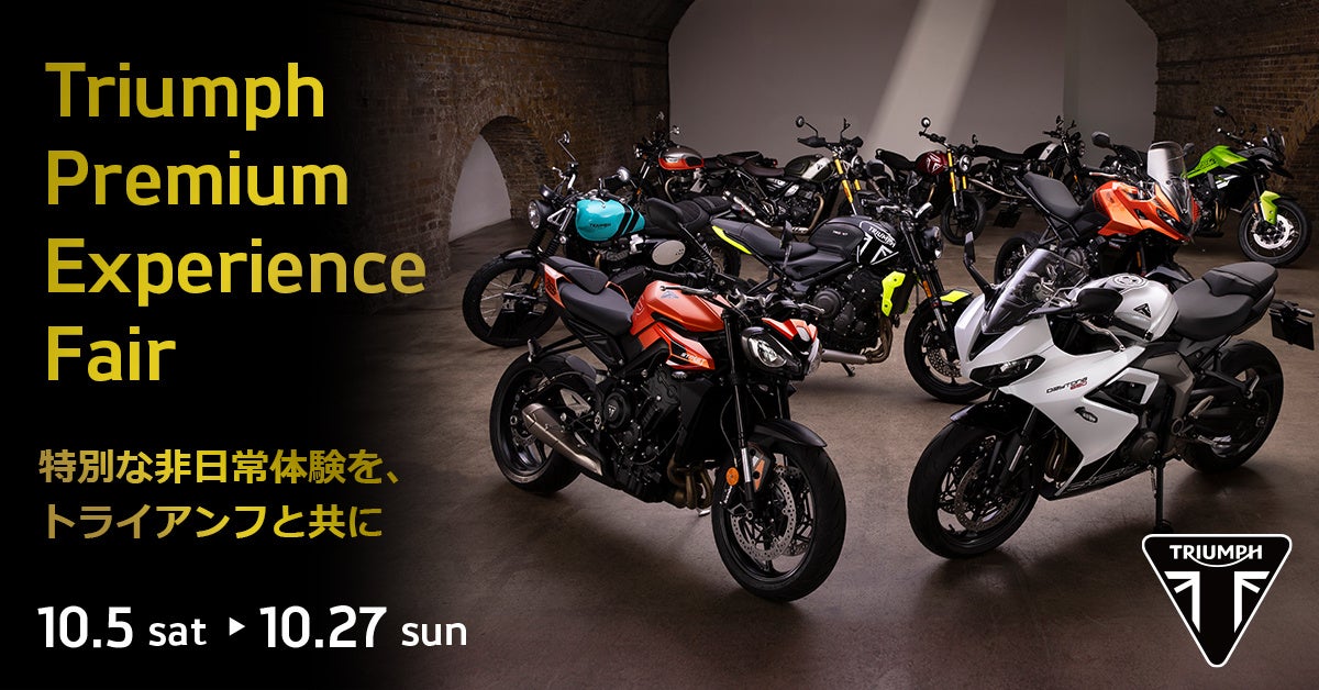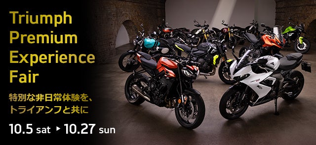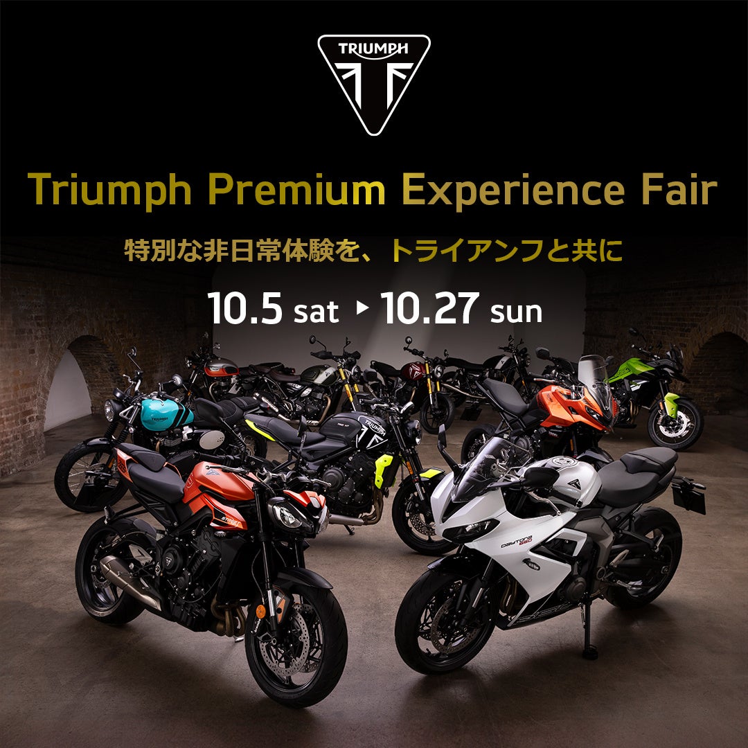 トライアンフモーターサイクルズジャパン株式会社(代表取締役社長:大貫 陽介 - 東京都港区) は、10月5日(土)~10月27日(日)までの期間中、10月のキャンペーンとして全国のトライアンフ正規販売店にて「PREMIUM EXPERIENCE FAIR」の開催をお伝えします。