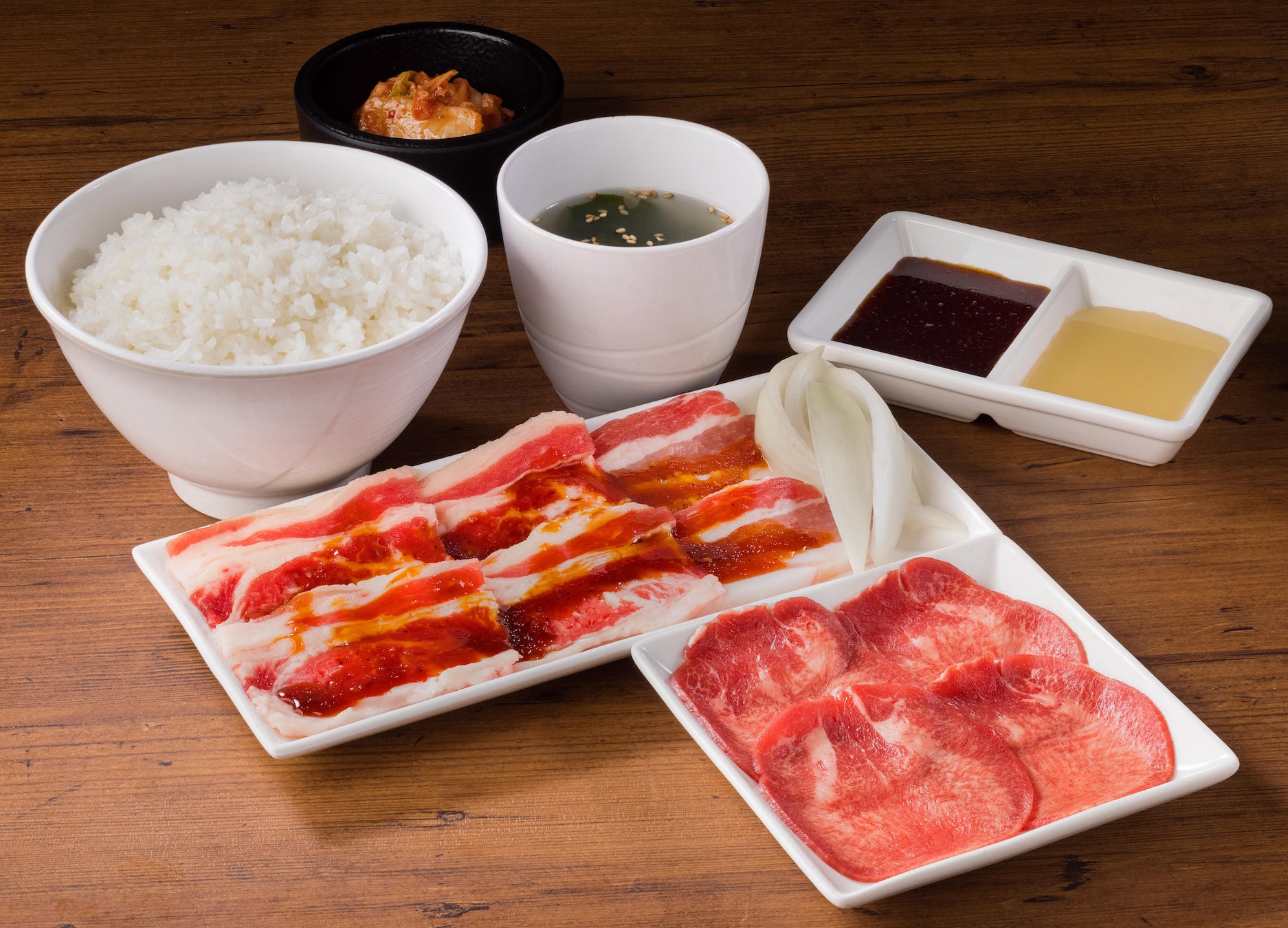 (牛バラカルビ・豚カルビ・牛タン/ごはん/スープ/キムチ)