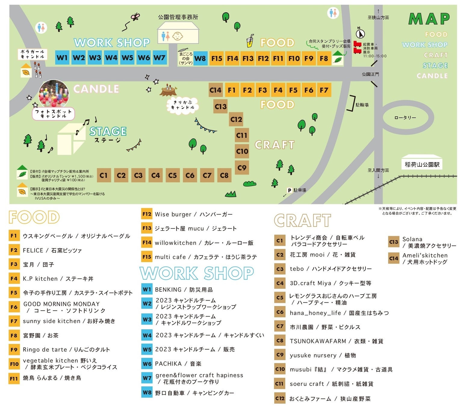協力:狭山市観光協会、狭山消防署、日高特別支援学校、Kivi candle、kuricangle、Sabby 他