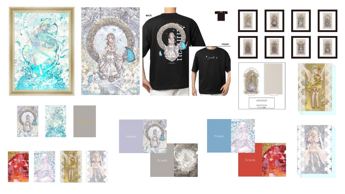 会場では、2024年9月1日(日)発売の初作品集『Anneau』や、オリジナルタロットカード『WREATH OF FORTUNE』も販売いたします。本個展限定の販売商品として、多層構造のレイヤードアクリルやレイヤードグラフ、ホログラムポスターなどのアート作品のほか、作品集に収録されているタロットカードのイラストを使用した額縁マグネット、アクリルジオラマ、描き下ろしイラストを使用した普段使いしやすいTシャツなど、風間雷太氏のイラストをお楽しみいただけるバリエーション豊かなグッズをご用意しました。10月20日(日)には風間雷太氏が来場し、会期初日の10月4日(金)から発売される色紙をご購入いただいた方限定でサイン会を実施予定です。
