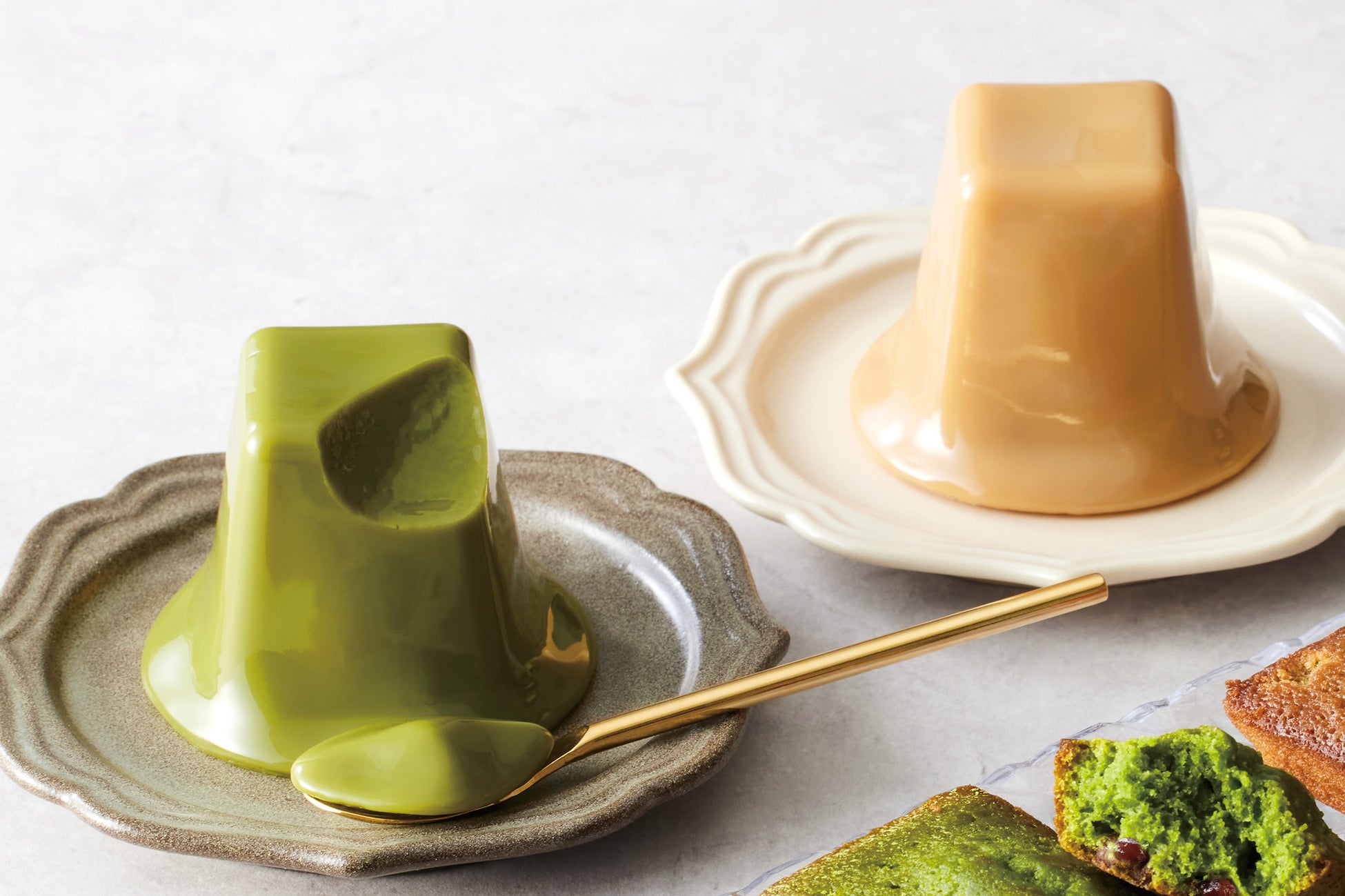 宇治抹茶や北海道産ミルクを使用し、口溶けなめらかに仕上げた「宇治抹茶のぷりん」と「ミルクキャラメルぷりん」