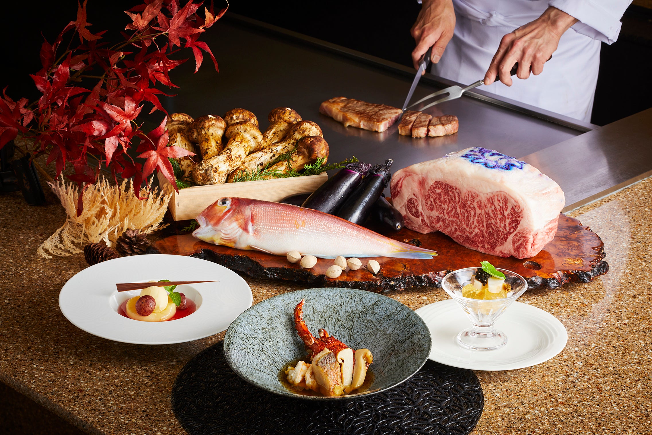 ■和牛最高峰の“神戸ビーフ”と“松茸”が織り成す、贅沢な秋の鉄板焼ディナーをご提供。