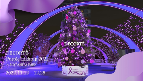 株式会社コーセー(本社:東京都中央区、代表取締役社長:小林 一俊)は、ハイプレステージブランド『コスメデコルテ』において、独自の取り組み「DECORTÉ PURPLE RIBBON PROJECT(コスメデコルテ パープルリボンプロジェクト)(※1)」の一環として、女性が心身ともに安心して暮らせる社会を願う「DECORTÉ Purple Lightup 2022」を2022年11月12日から12月25日までの期間、渋谷区宮下公園(MIYASHITA PARK 4階)で実施します。これに伴い、初日となる11月12日に点灯式を行います。