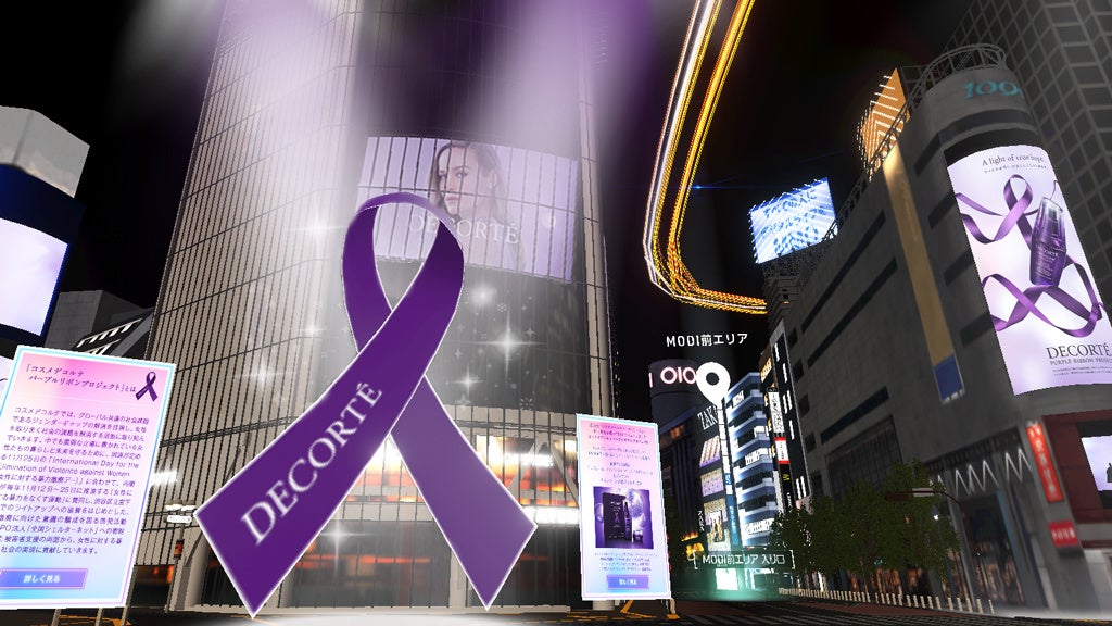 宮下公園のバーチャル空間「渋谷区立宮下公園 Powered by PARALLEL SITE」でも、同様の世界観を体験できる空間を再現。リアルと融合し、どこからでもイルミネーションが楽しめる空間やプロジェクトの活動をコンテンツでも展開していきます。また、渋谷区公認配信プラットフォーム「バーチャル渋谷」でも「DECORTÉ Purple Lightup 2022」を実施し、巨大パープルリボンが登場するVRフォトスポットを設置します。