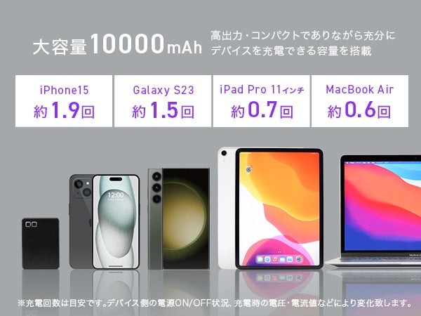 ◆大容量10000mAh搭載でスマを約2回充電可能