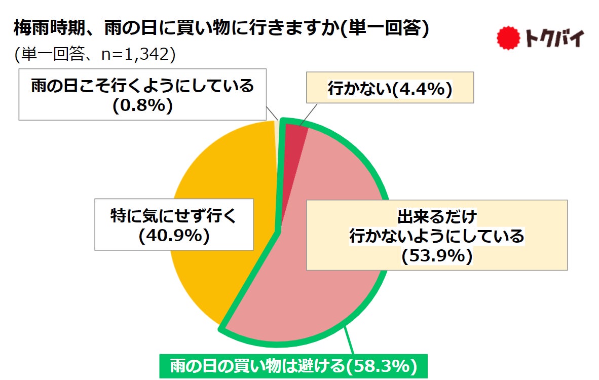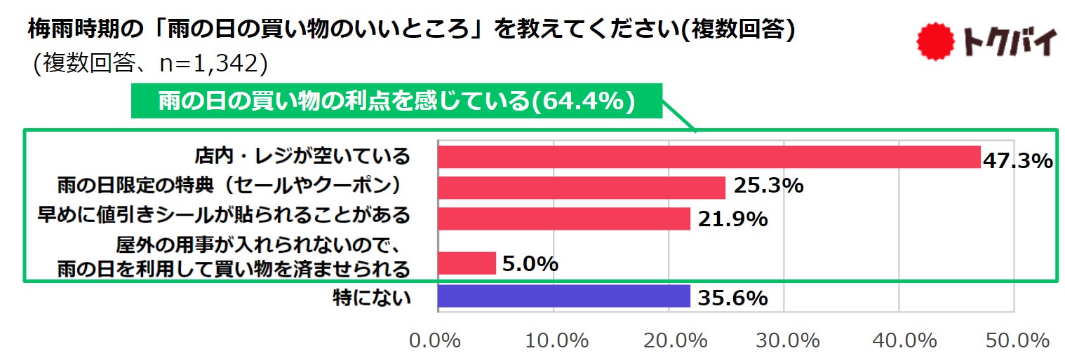 【トクバイ調査】雨の日の買い物、約6割が消極的である一方、「店内・レジが空いている」「雨の日限定の特典」などの利点を感じている人が6割以上
