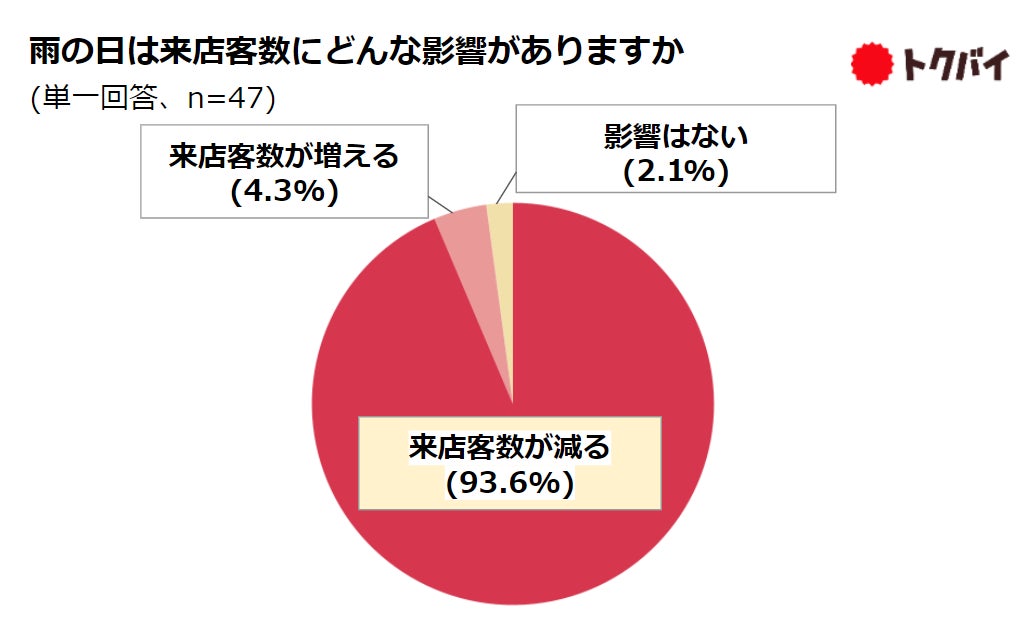 また、スーパーマーケットをはじめとする9割以上の企業が「雨の日は来店客数が減る」と回答し、約6割の企業が梅雨時期の販促施策の実施を検討していることがわかりました。