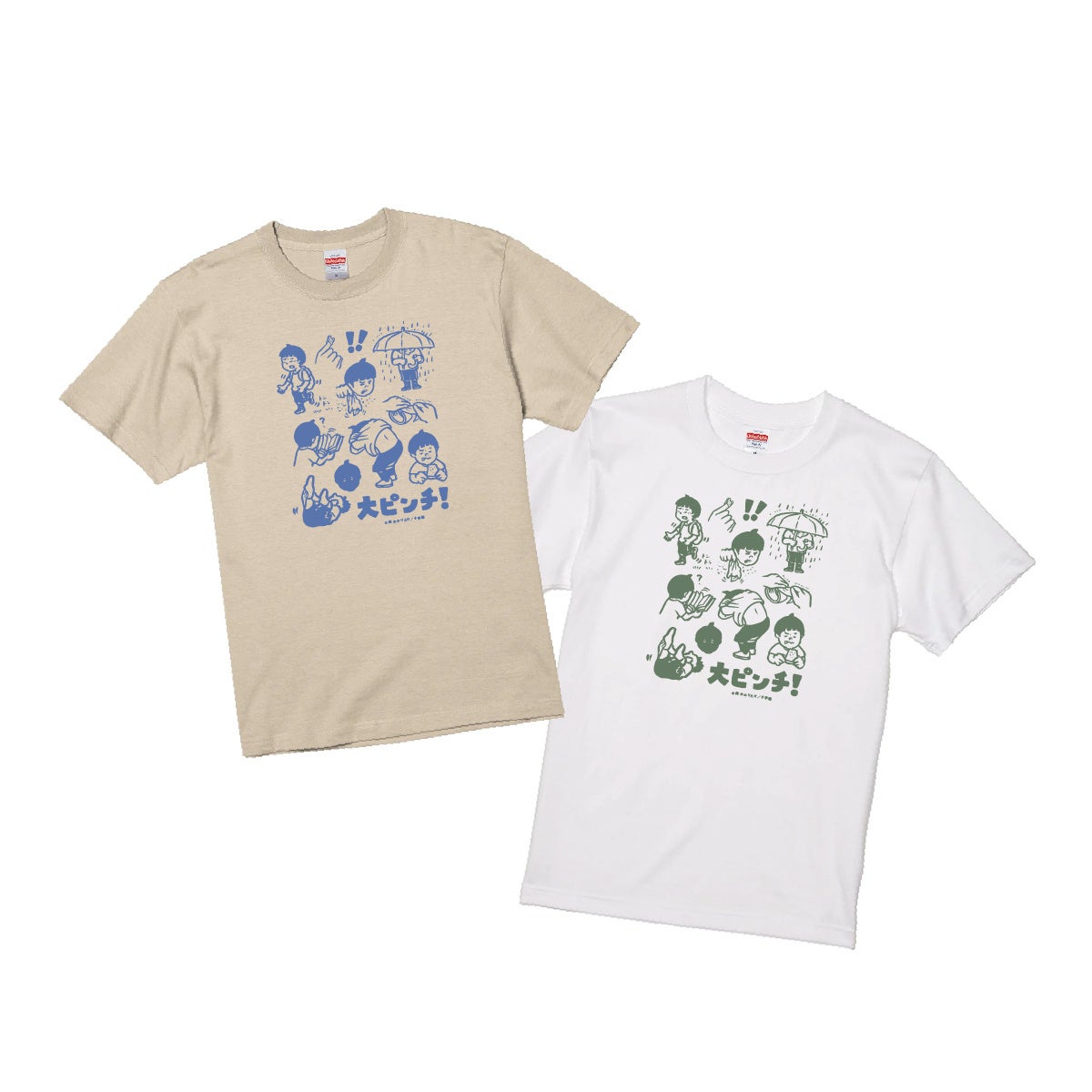 『大ピンチずかん』のおわりのページに登場する男の子が集合したTシャツ。