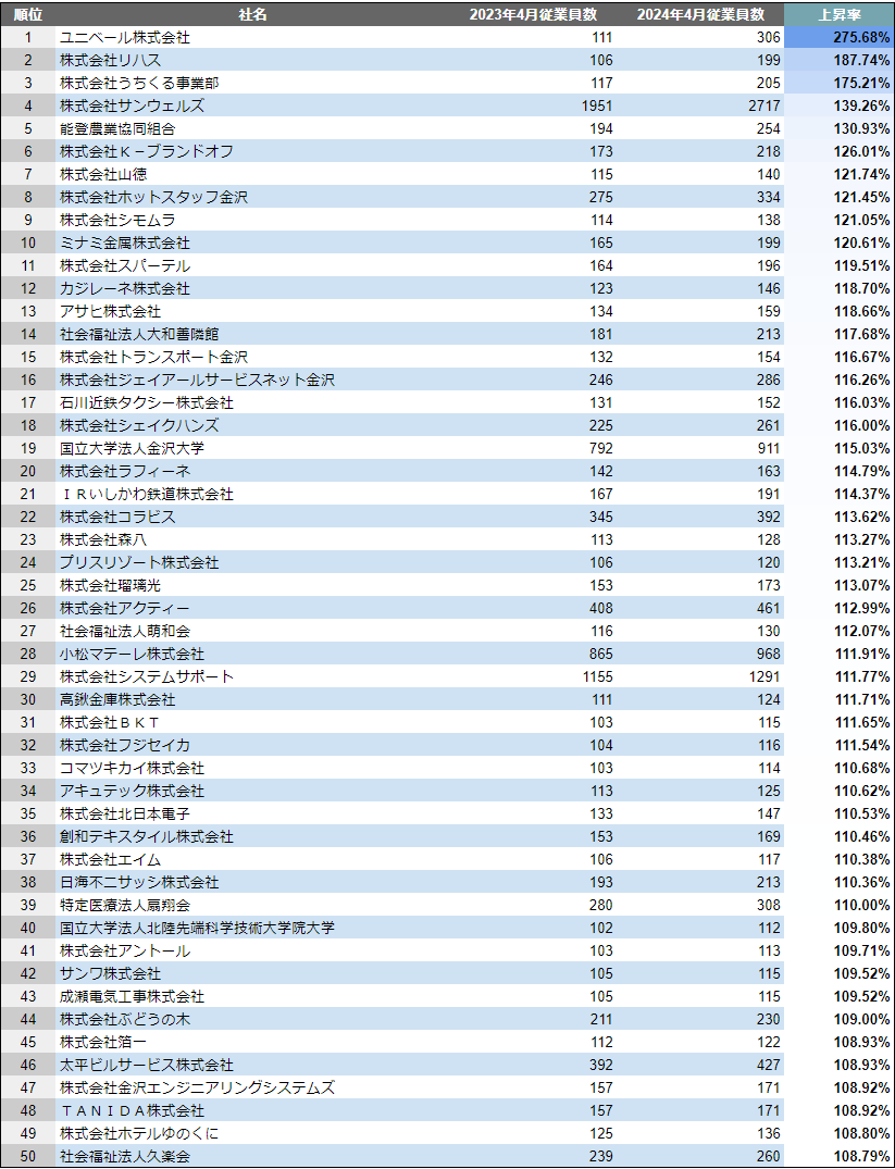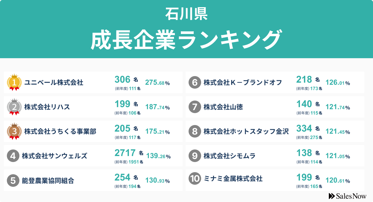 【石川県】成長企業ランキングTOP50!/SalesNow DBレポート