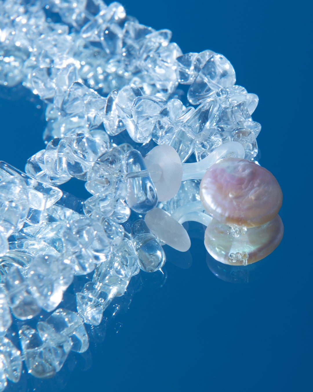 不揃いな大きさの石で組まれたバランスが印象的で、身軽な夏の装いもしっくりくる雰囲気。