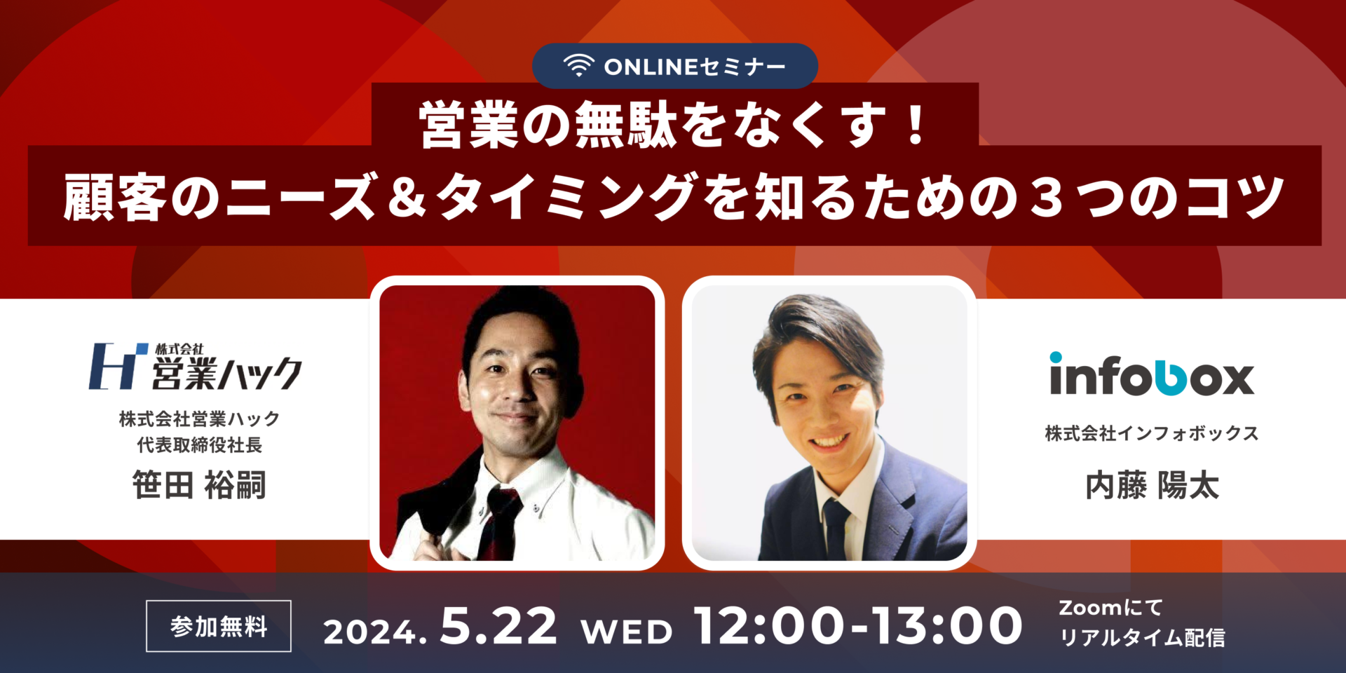 営業の無駄をなくす!顧客のニーズ&タイミングを知るための3つのコツを解説します!《5/22(水)12:00~無料オンラインセミナー》