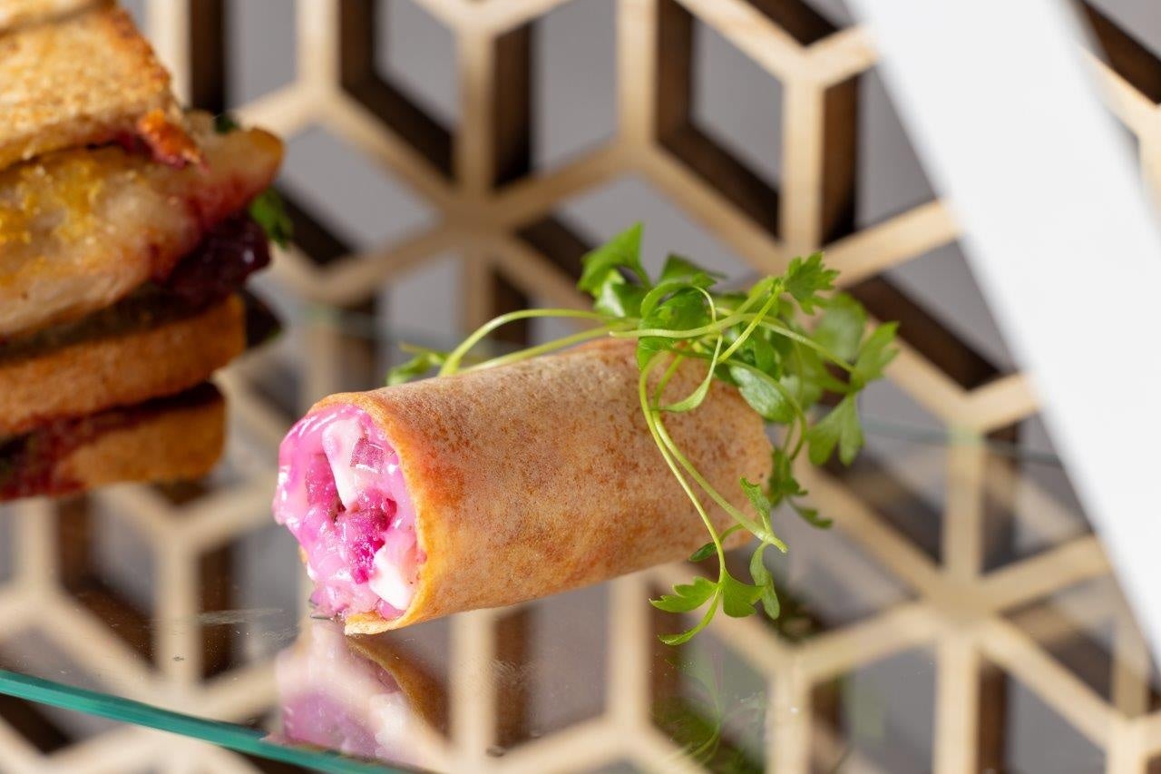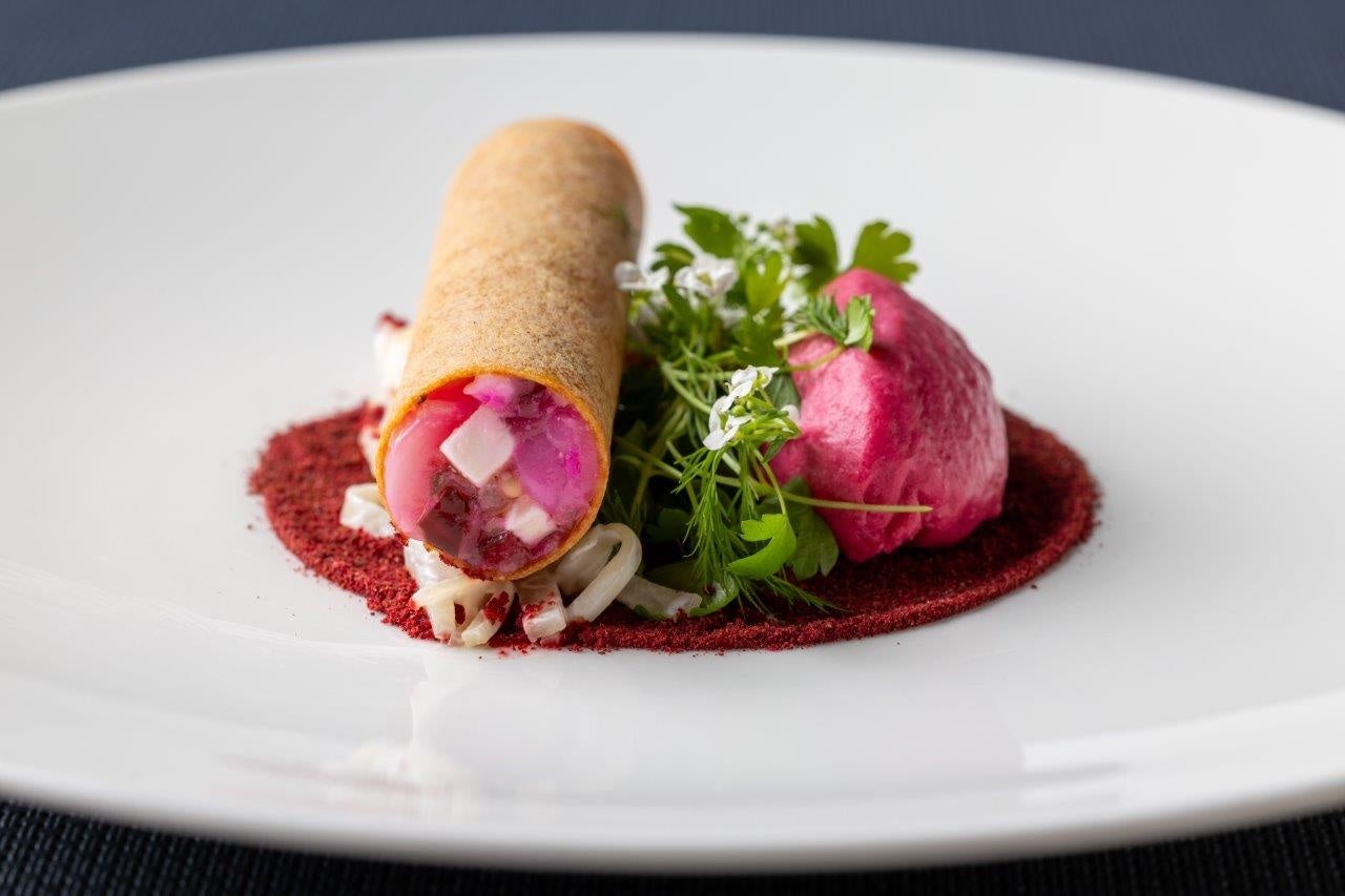 セイボリーは、レストランのコースの魅力をぎゅっと詰め込んだ8品が登場します。この冬は、メインダイニング「KASA」のコース前菜としても登場する「アオリイカのシガール」が、特別にミニサイズに。鮮やかな紫色が引き立つ「アオリイカのシガール」には、柴漬けが使用されており、甘味のあるアオリイカと紫蘇の酸味が絶妙にマッチ。煎茶や玉露など、和のボタニカルをふんだんに使ったジャパニーズクラフトジンROKUとのマリアージュでお楽しみください。その他、鱈の旨味がふわっと広がる「鱈とジャガイモのクロケット」や、旬の蕪の甘さたっぷりの「聖護院蕪のコンソメ」、「ラムジャーキーとミックスナッツ」などお酒を引き立てるメニューが並びます。特別な季節に贈る、プルマン東京田町の「冬のハイティー」と、贅沢なひとときをお過ごしください。 1名様からご利用いただけます。