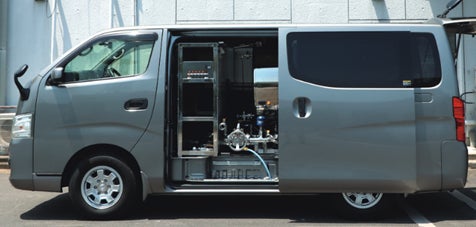これらの課題を解決するため、全国的にも導入事例が少ないバンタイプ車両一体型給水車を配備しました。