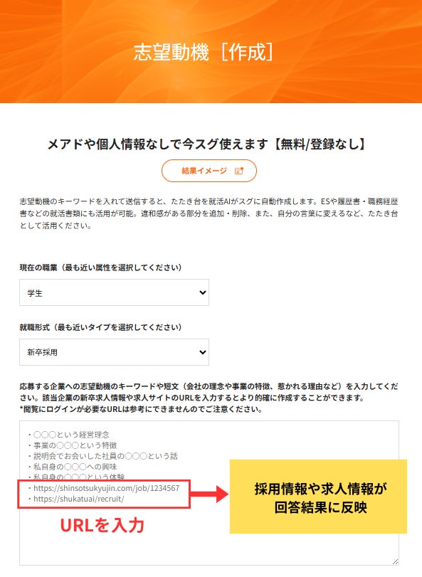 「就活AI」 志望動機・逆質問作成ツールに「URL読み取り機能」を追加