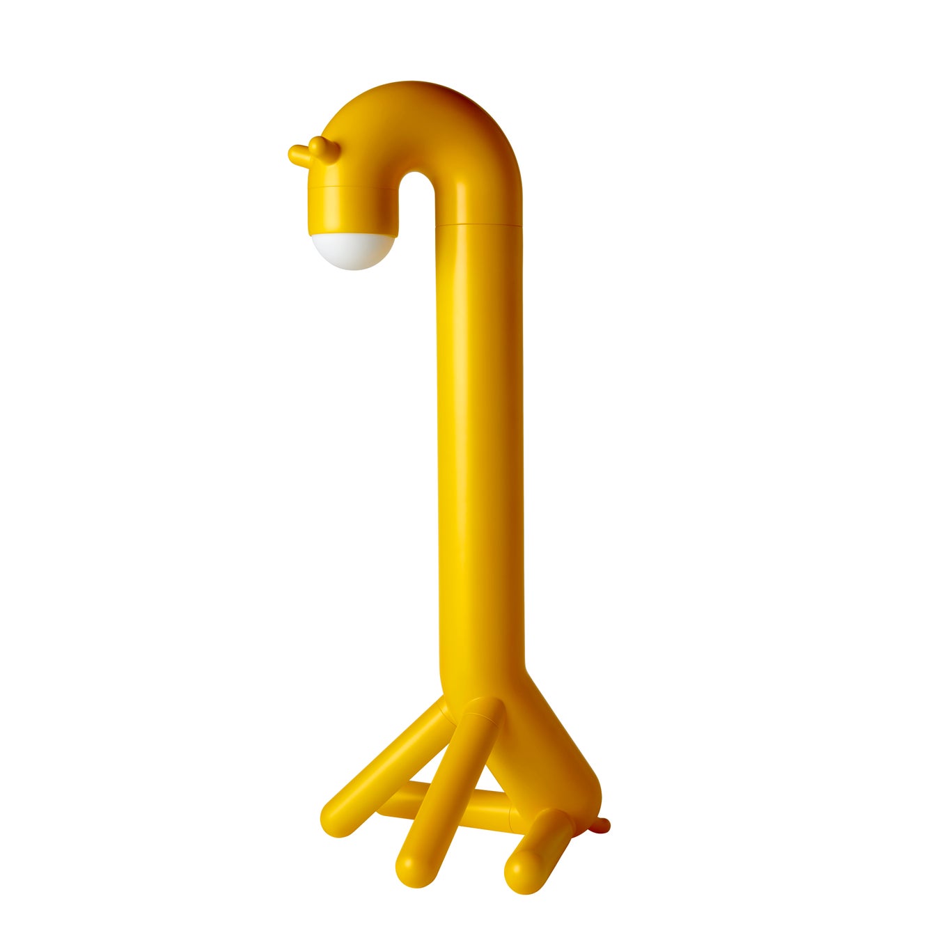 首を少し曲げて座っている優しそうなキリンのフロアランプで、子どもが眠っているときに優しく見守ります。昼間は子ども部屋のデコレーションとしてかわいらしく、夜はまぶしくないやさしい明かりで読み聞かせの時間を心地よく照らします。キリンの頭は少し左右に動かせるので、明かりの向きを調整できます。埋め込み式LEDで電池式のため好きな場所に置けますが、安全上、必ず床に置いてください。