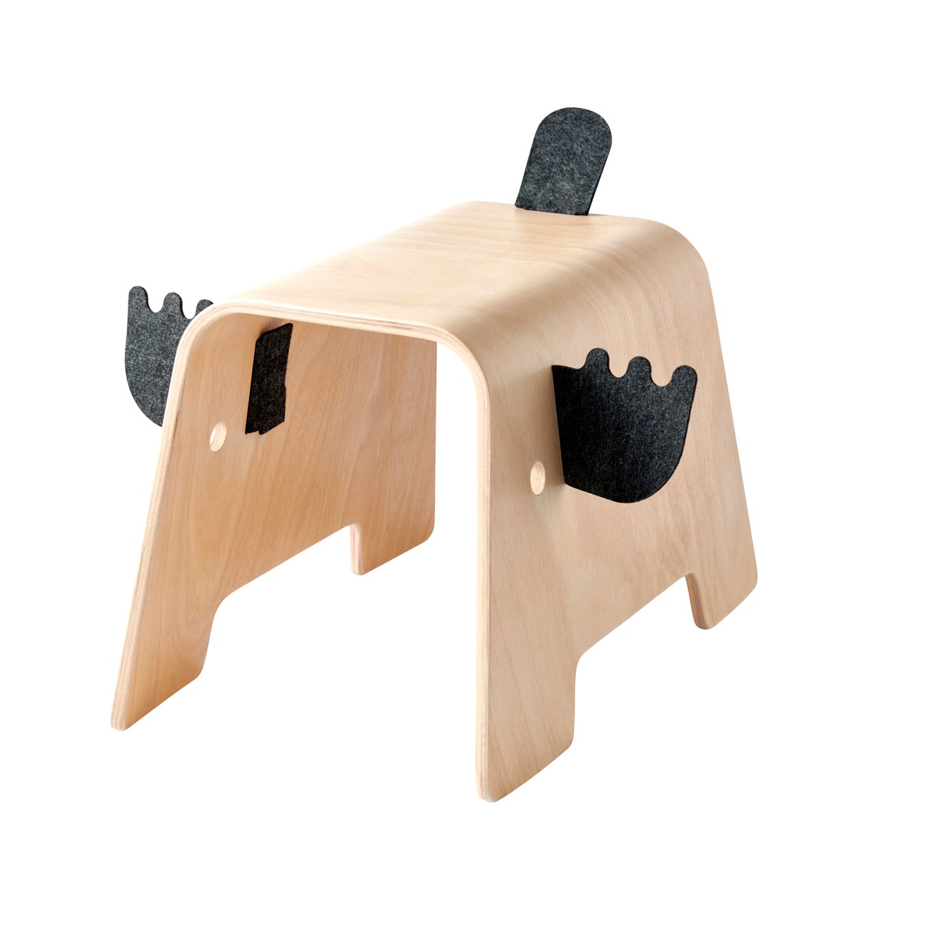 角、しっぽ、目が付いたこの子ども用スツールは、曲げ加工した突き板製。子ども部屋でのあらゆる冒険で活躍する楽しいムース(ヘラジカ)の友だちです。柔らかな曲線、遊び心のあるディテール、なめらかな表面が特徴のスツールは、美しく、楽しく、座るのに最適で、リビングルームの装飾的なディテールにもなります。角としっぽを入れ替えられるので、想像の世界では、ムースはどんな見た目にもなれます!