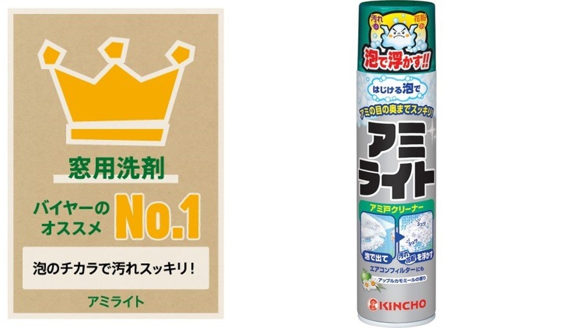 スプレーして水で流すだけで汚れがすっきり落ちます。はじける泡で、汚れや花粉を浮き出し、泡切れが早くすばやく洗浄できます。1本でアミ戸約4枚を処理できます。