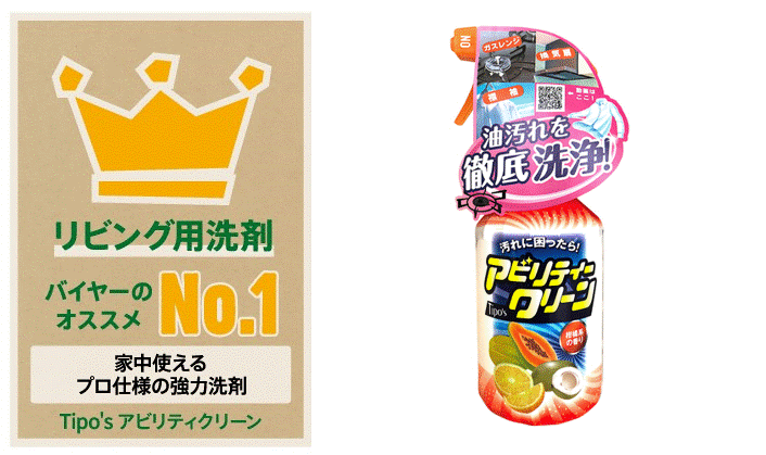 換気扇等の頑固な油汚れから衣類のしつこいシミ汚れ落としまで使える万能クリーナーです。頑固な油汚れを浮かすヤシの実由来成分と油を分解するグレープフルーツ抽出液、タンパク質を分解するパパイア酵素を配合しました。落ちないと諦めていたレンジ周り、リビング、浴室、トイレ、衣類のシミ汚れまで強力洗浄いたします。