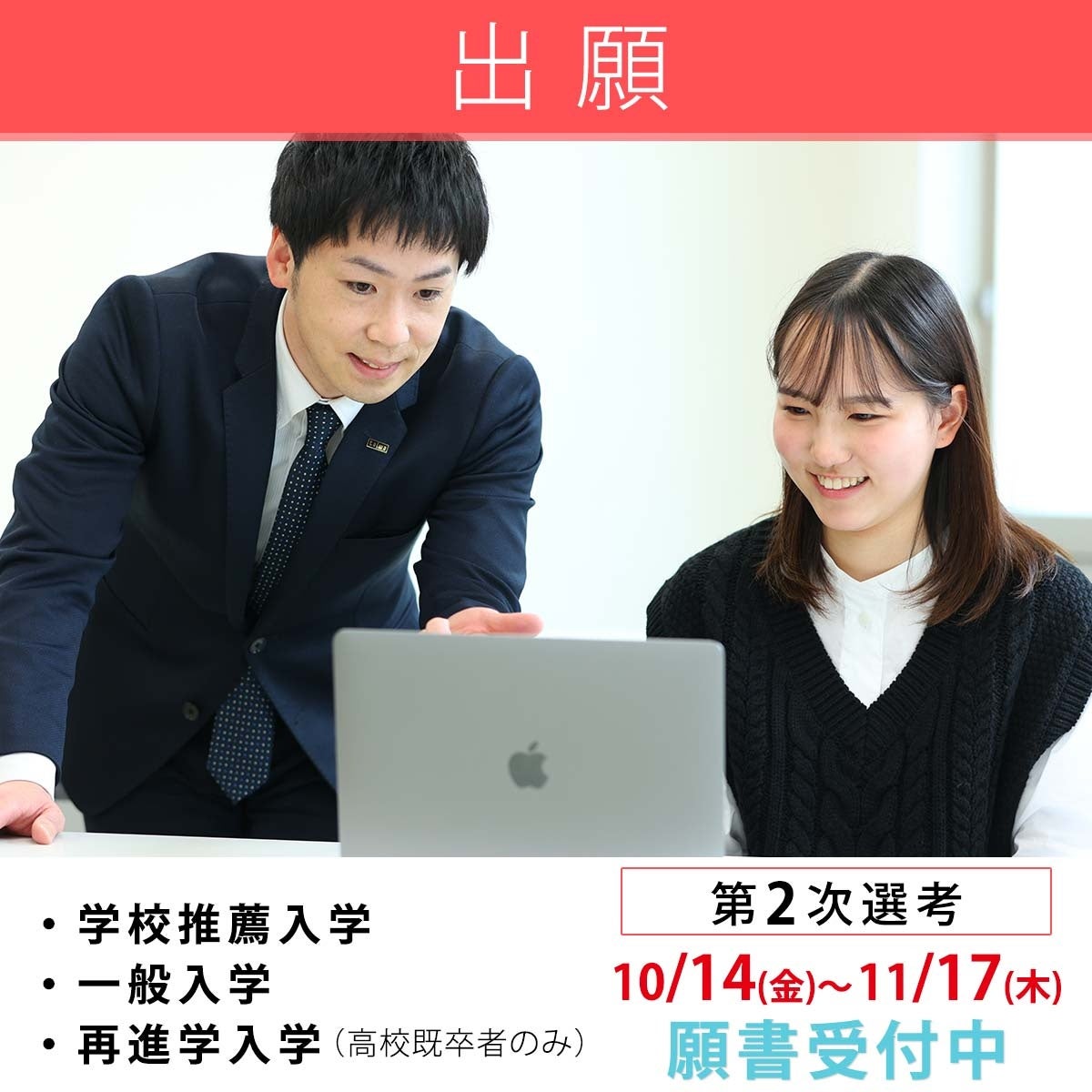 京都ホテル観光ブライダル専門学校は2022年10月14日(金)より2023年度4月入学対象の指定校推薦入学・学校推薦入学・一般入学・再進学入学の第2次願書受付を開始し、ホテル学科・旅行学科・ブライダル学科の学生を募集いたします。インターネットからの出願が可能です。また、面接を伴う試験は、WEBでの面接も可能です。