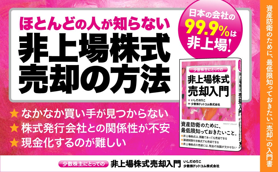 なかなか買い手が見つからない……。 そんな「非上場企業の株式」は売却できる! 書籍『少数株主にとっての非上場株式売却入門』が7月21日に発売