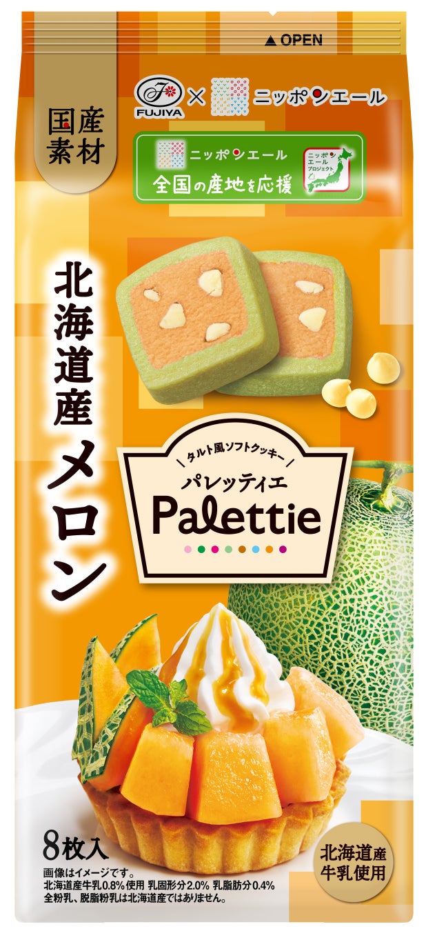 不二家が自信を持ってお届けするタルト風ソフトクッキーブランド「パレッティエ」より、「ニッポンエール」とコラボし、「北海道産ミルク」と「北海道産メロン」を使用した季節限定の新商品が登場します。