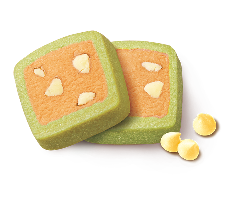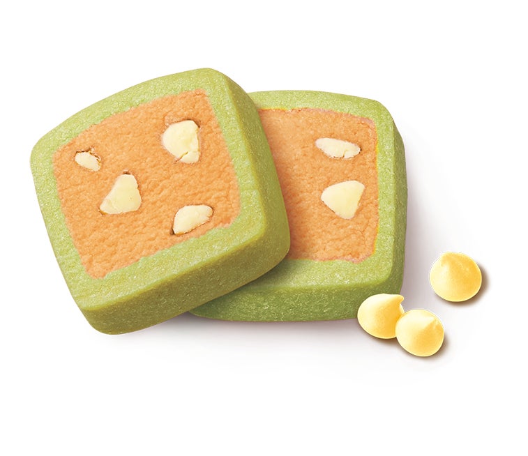 ・北海道産メロン果汁と国産米粉、ホワイトチョコチップを練り込んだしっとり生地に、北海道産牛乳を使用したサクホロ生地を組み合わせたソフトクッキー