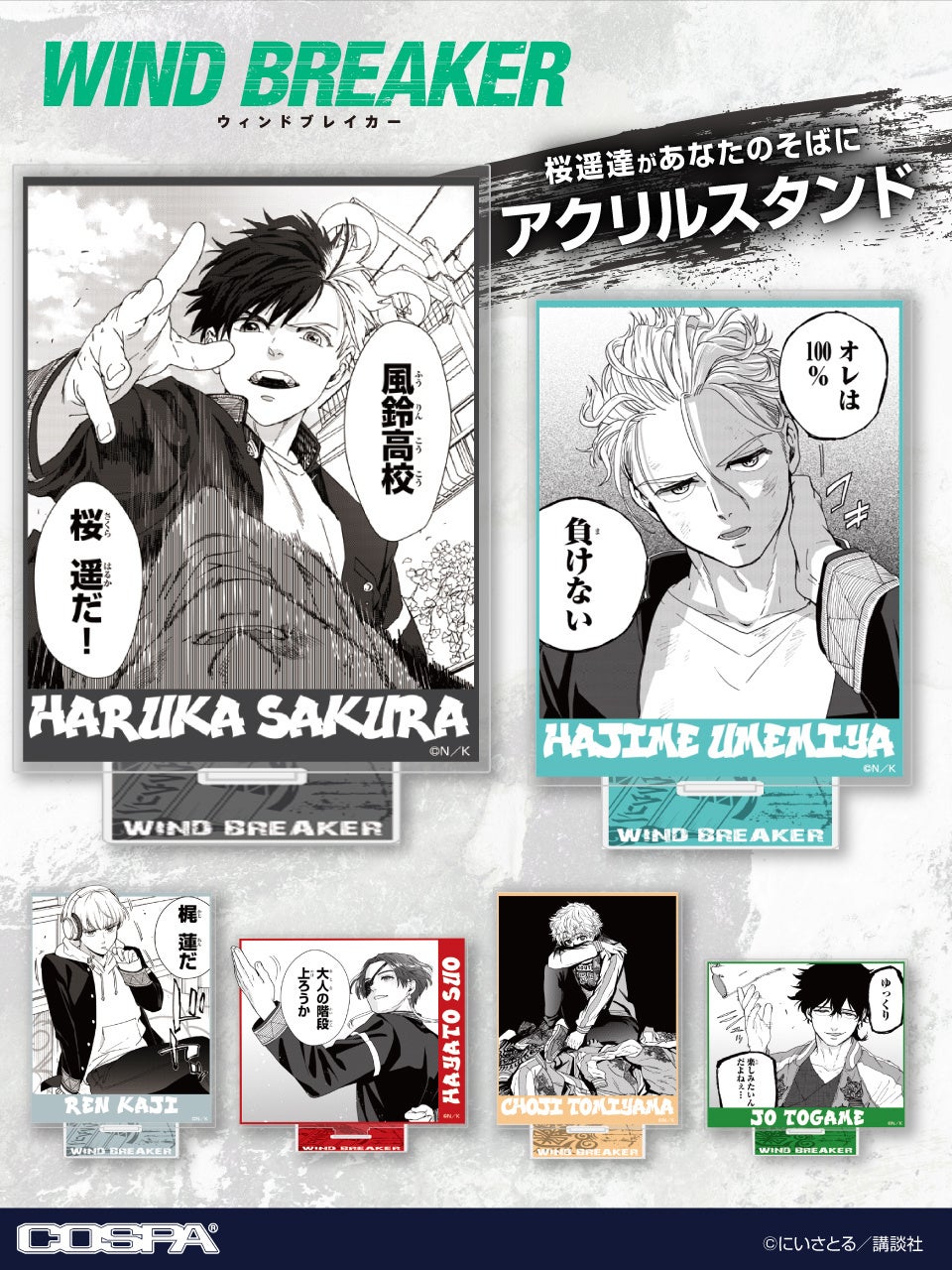 『WIND BREAKER』「ボウフウリン」「獅子頭連」コーチジャケット、Tシャツ、フラッグ、「桜遥」「梅宮一」たちのアクリルスタンドなどが新登場!【株式会社コスパ】