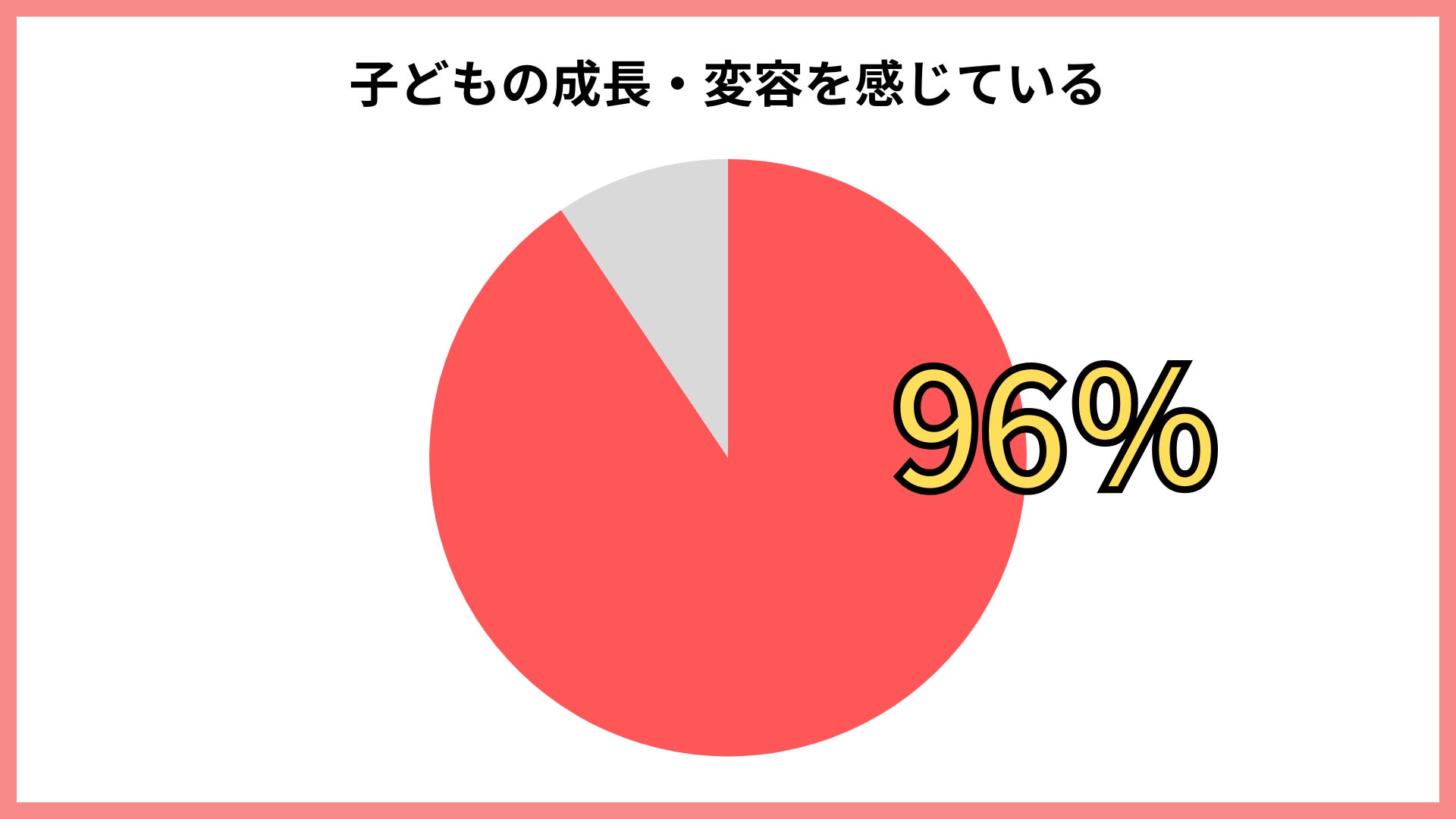 2024年12月、保護者に向けて実施したアンケートでは、不登校の保護者96%がNIJINアカデミーでの子どもの成長・変容を感じていると回答しています。