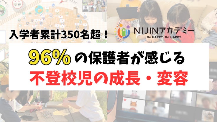 株式会社NIJIN(本社:東京都江東区、代表取締役:星野達郎)が運営する不登校オルタナティブスクール『NIJINアカデミー』が、2024年12月に保護者に向けて実施したアンケートでは、回答した保護者156名の96%の保護者がNIJINアカデミーでの子どもの成長・変容を感じているという結果となりました。