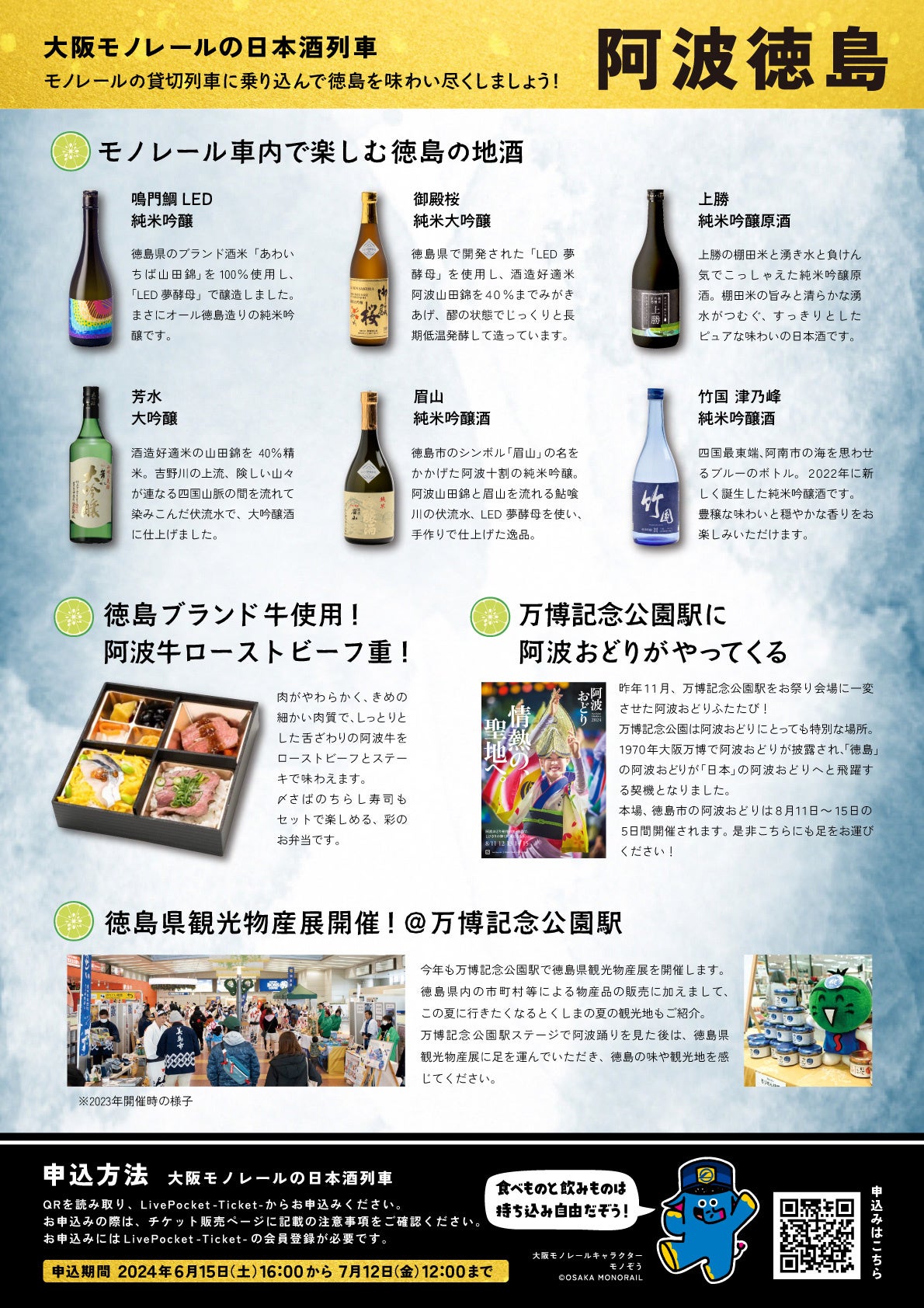 大阪モノレールの日本酒列車「阿波徳島」の募集を開始します!