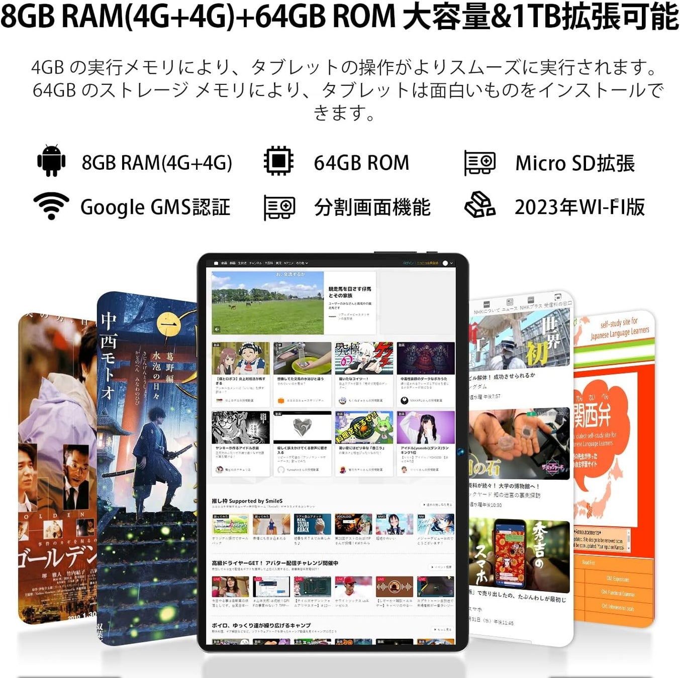 【超高速WIFI6&長持ち大容量バッテリー】 2.4G / 5GデュアルバンドWiFi接続、タブレットのプロフェッショナルWiFiバージョンをサポートし、さまざまな接続方法に適応します。さらに、5000mAhの大容量バッテリーを搭載し、最大5時間の1080p動画を再生することができます。長持ちする待機時間は、通勤途中や出張、旅行のときにも気軽に使うのに最適です。