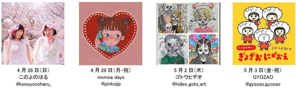 ゴールデンウィークは日替わり似顔絵イベントを開催。参加方法や詳細は各アーティストのSNSをご覧ください。