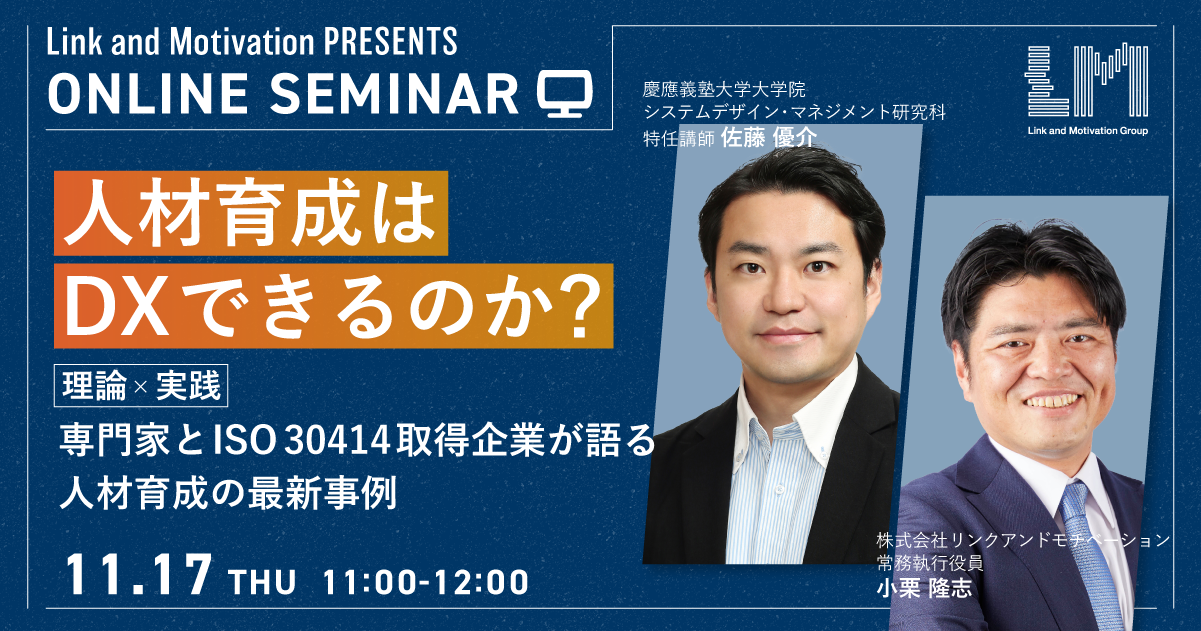 株式会社リンクアンドモチベーション(本社:東京都中央区、代表:小笹芳央、証券コード:2170、以下当社)は、「人的資本経営」の実践をテーマにしたセミナーの開催を下記の通りお知らせいたします