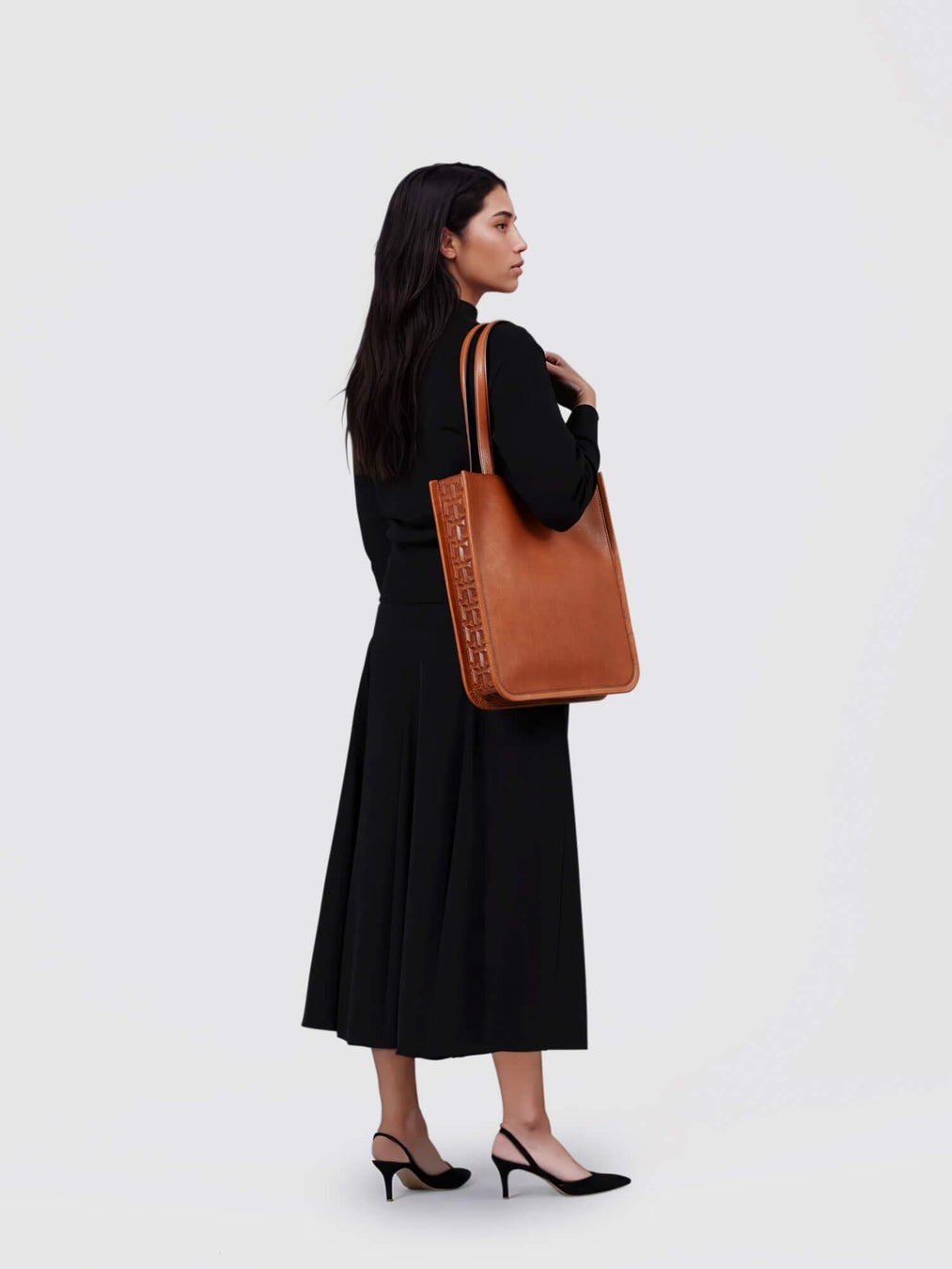 「シグネチャーレイズド」が存在感を放つ、柔らかな革のスリムなトート