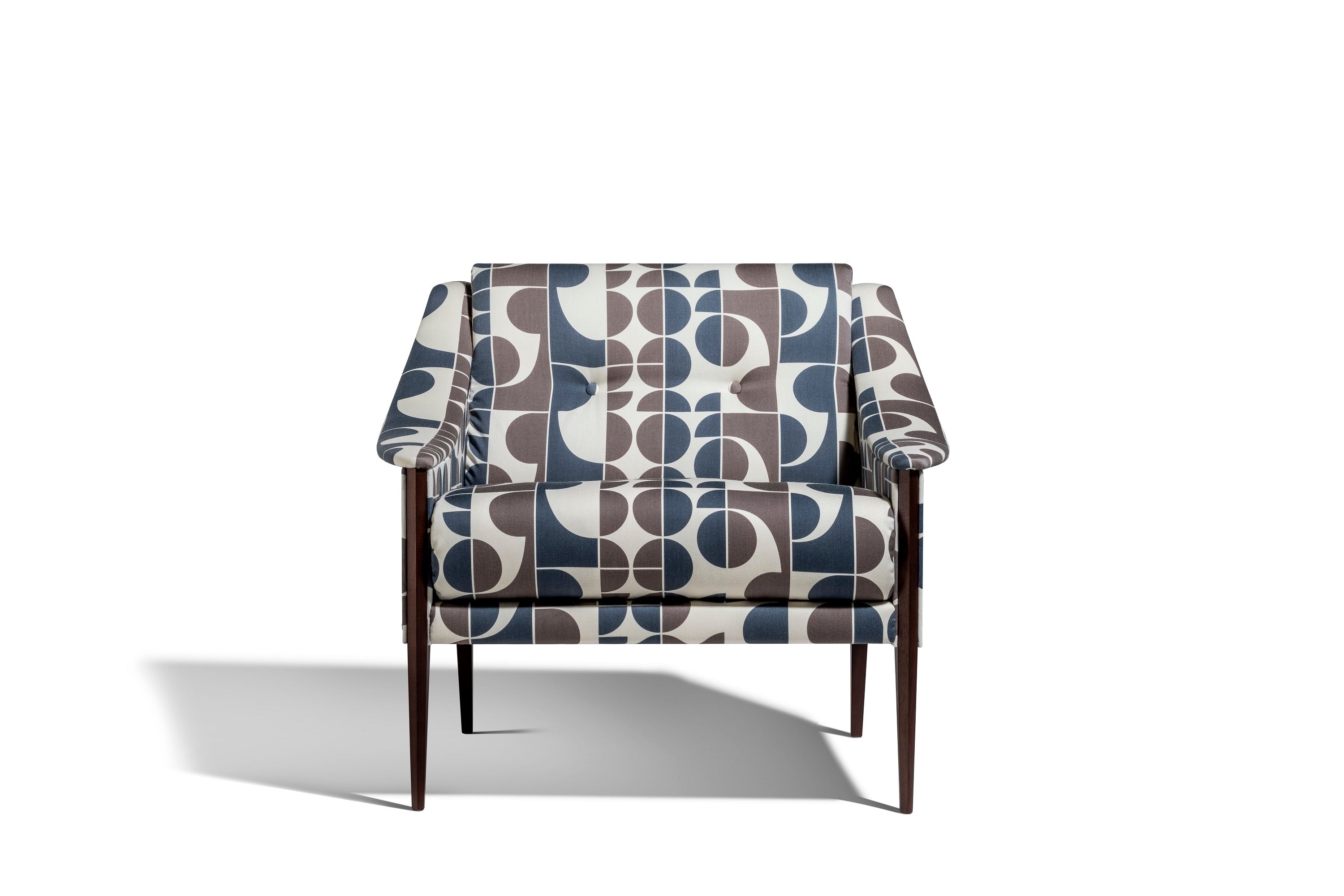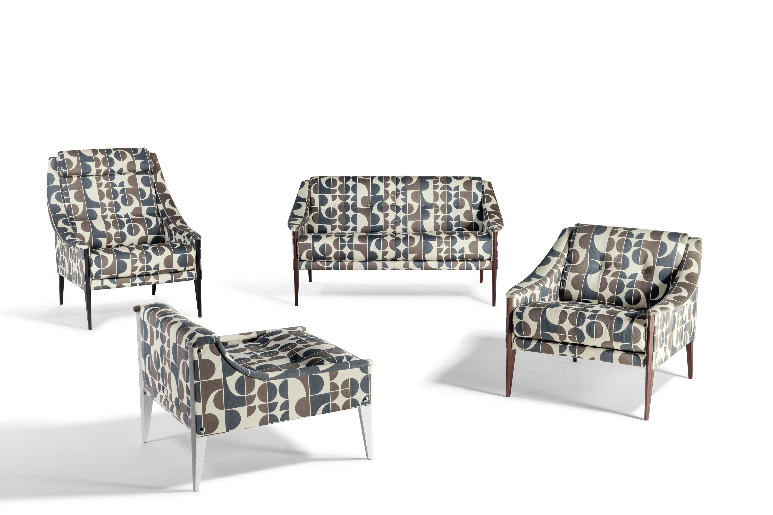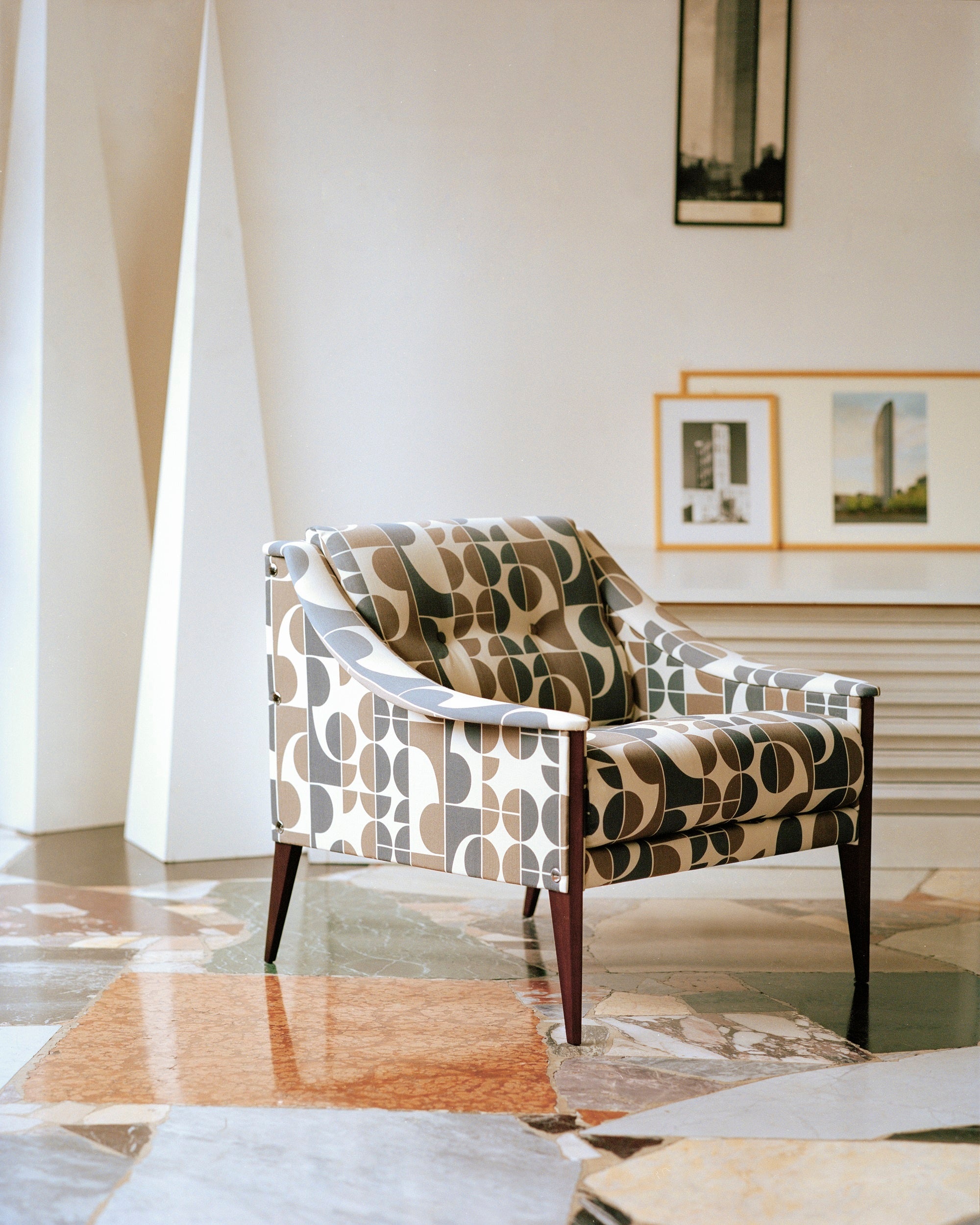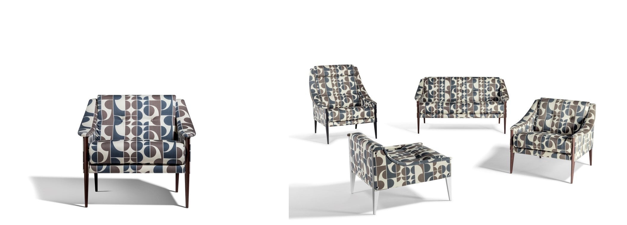 1965年にイタリア建築の巨匠ジオ・ポンティによりデザインされた歴史的名作チェアを、ポルトローナ・フラウが再編集。軽快で新鮮な魅⼒に満ちた独創的な張地で装いも新たに登場しました。ポンティ自身が友人のためにデザインしたと云われるグラフィック「REDEVANCE」をラグジュアリーなウールサテンのテキスタイルでしなやかな美しさで表現。