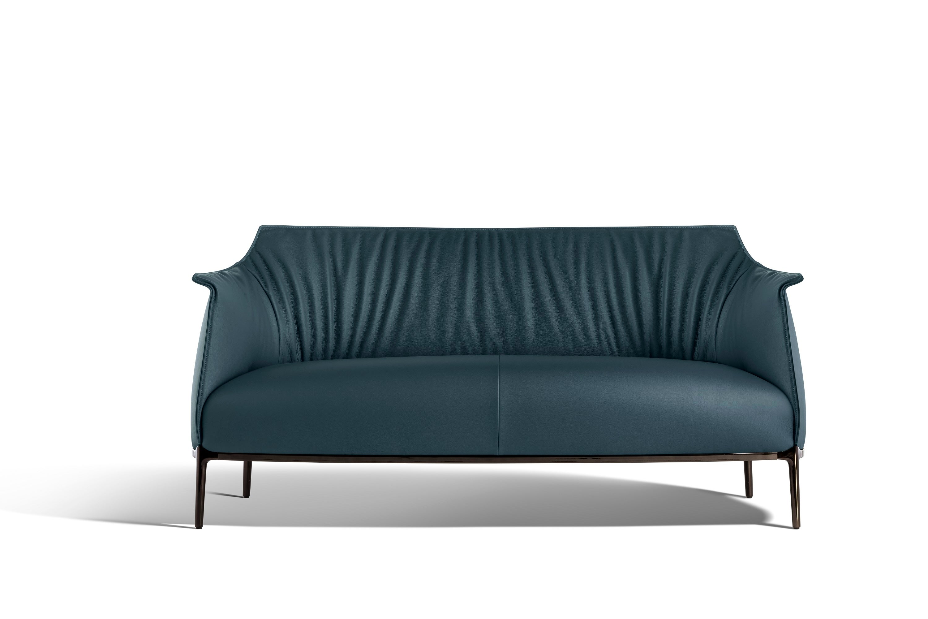 “会話を楽しみ、分かち合い、喜びを味わう”ためにデザインされたソファは、2人掛け、3人掛け、脚をゆったりと伸ばしてくつろげる丸みを帯びたタイプなど複数のバージョンを自由に組み合わせできるモジュール式ソファ。張地はPelle Frau®レザーまたはファブリック、もしくはレザーとファブリックの組み合わせが可能です。