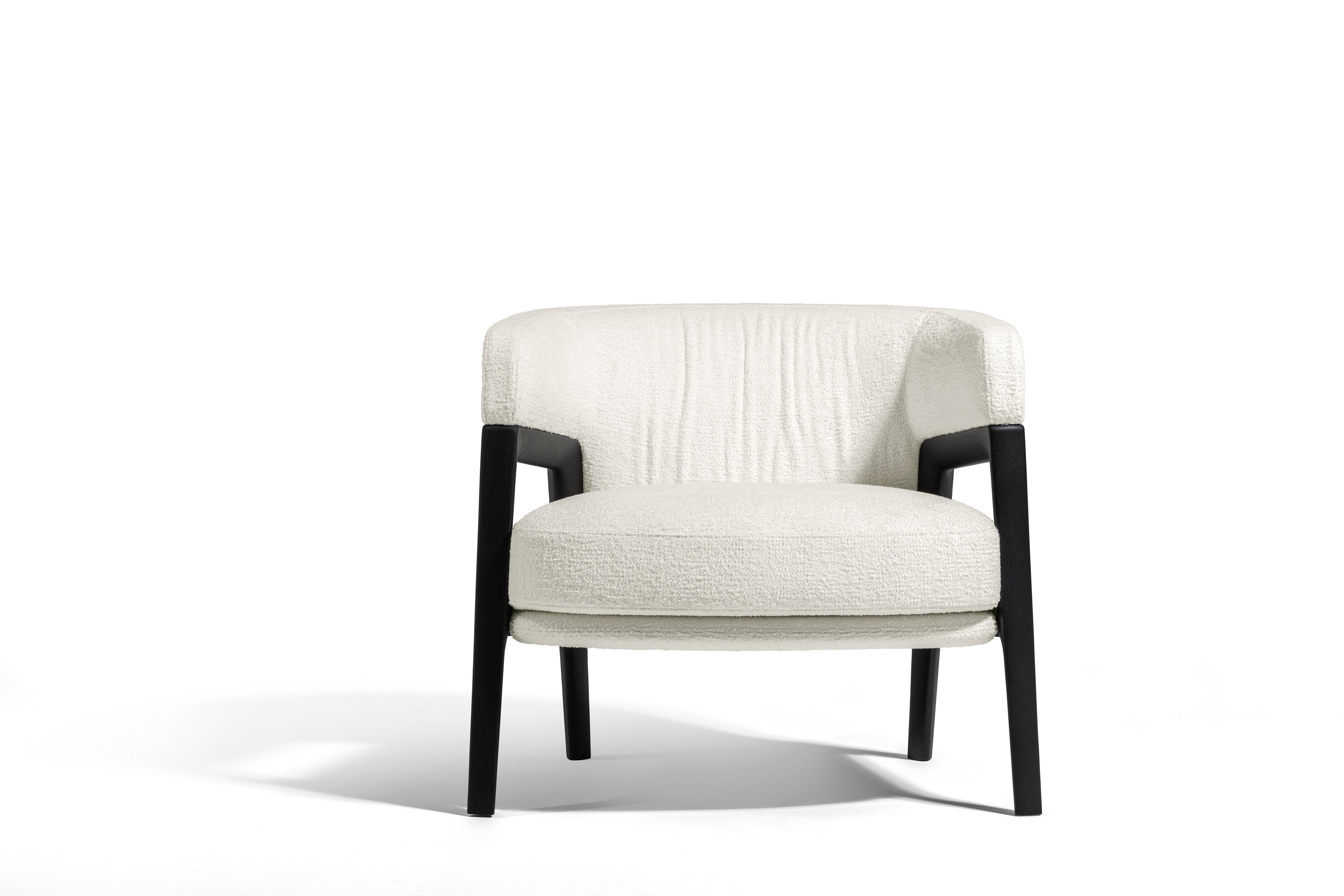 ゆったりとした座面とフィット感に優れた快適な座り心地で、くつろぎのひとときを演出するラウンジチェア。張地にはトーン・オン・トーンのステッチを施したPelle Frau®レザーまたはファブリックからお選びいただけ、シートクッションは取り外しが可能です。アッシュ無垢材のフレームは、複数の仕上げからお好みでお選びいただけます。一脚だけでも絵になる美しいフォルムは、リビングルームはもちろん、オフィスのラウンジにも最適なアイテムです。