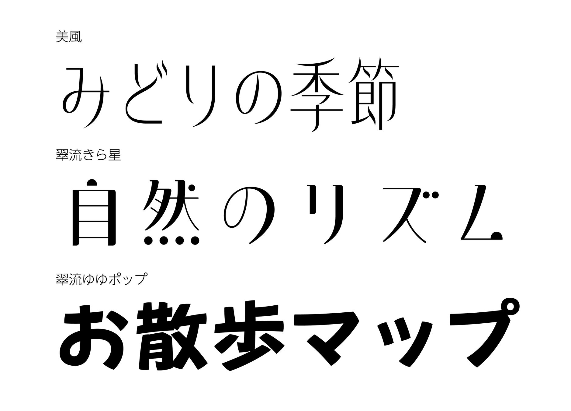 近年、モリサワは台湾の繁体字フォントをベースにした書体開発に取り組み、重層的な文字文化を取り入れたデザインを編み出しています。「美風(みかぜ)」は、台湾の玉川設計所が手掛ける繁体字フォントをベースに制作され、涼やかで洗練された雰囲気をまといます。また、台湾の子会社であるArphic Typesの書体の漢字を組み合わせた「翠流(すいりゅう)きら星」と「翠流ゆゆポップ」は、遊び心やホッとするような優しさを伝えるのに適したデザイン書体です。