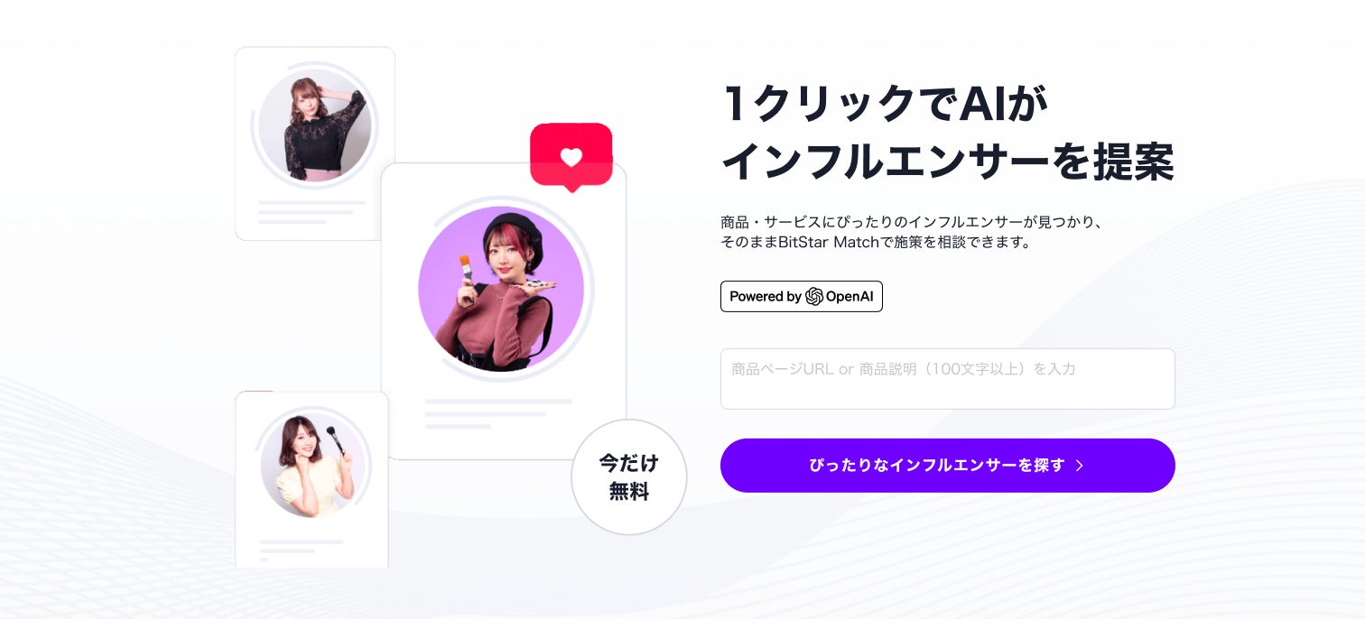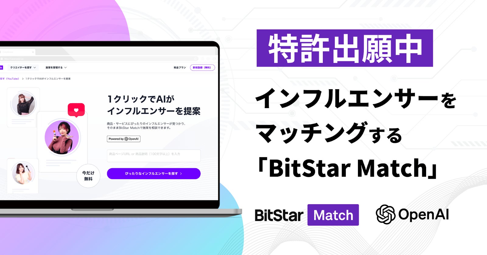 日本初!* 企業に最適なインフルエンサーをマッチングする生成AIを活用したツールをBitStar Matchにて提供開始。国内最大級のインフルエンサーデータアセットを強みにサービスを強化