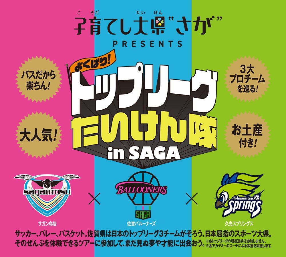こどもたちの夢や才能を発掘し応援できる佐賀県でありたい!3種目のトップリーグが集まる日本屈指のスポーツ大県ならではの夢企画で佐賀県での子育ての魅力を発信!