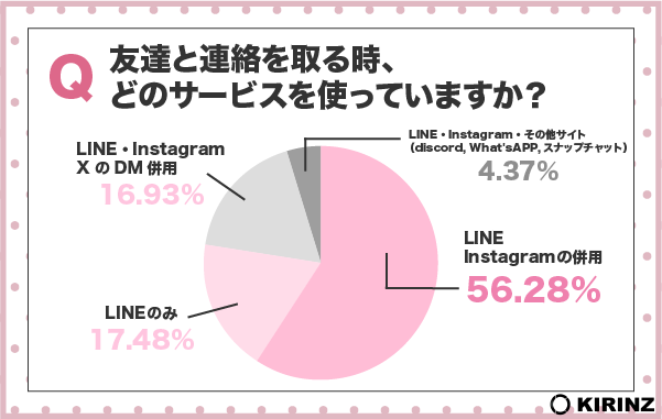 1. 友達との連絡は「Instagram」のDMでやり取りする人が、半数以上